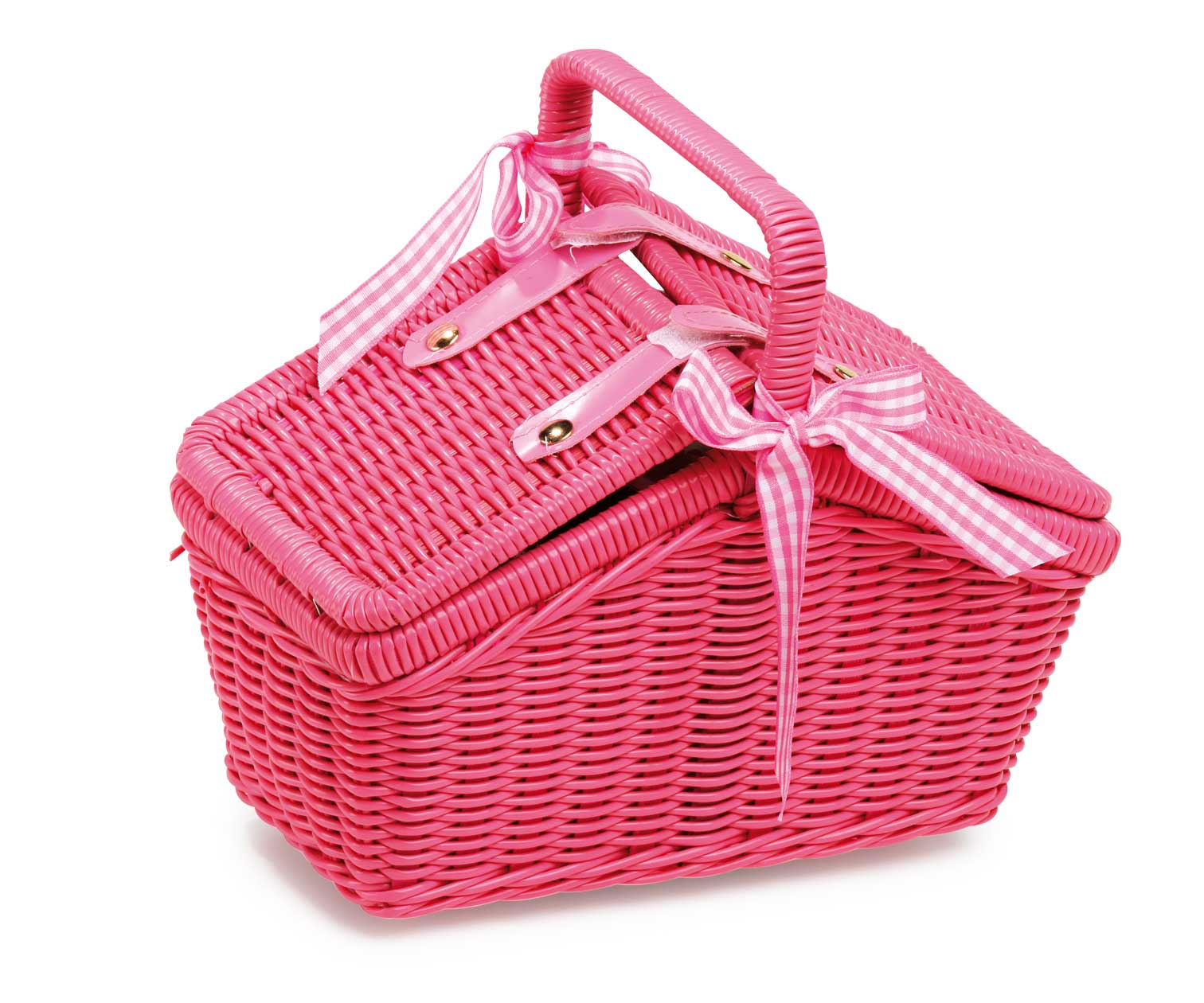 Der aus Rattan bestehende Korb verwahrt das Geschirr sicher bis zum nächsten Picknick und bietet auch noch Platz für kleine Leckereien. Der perfekten Begleiter bei Puppenausflügen!