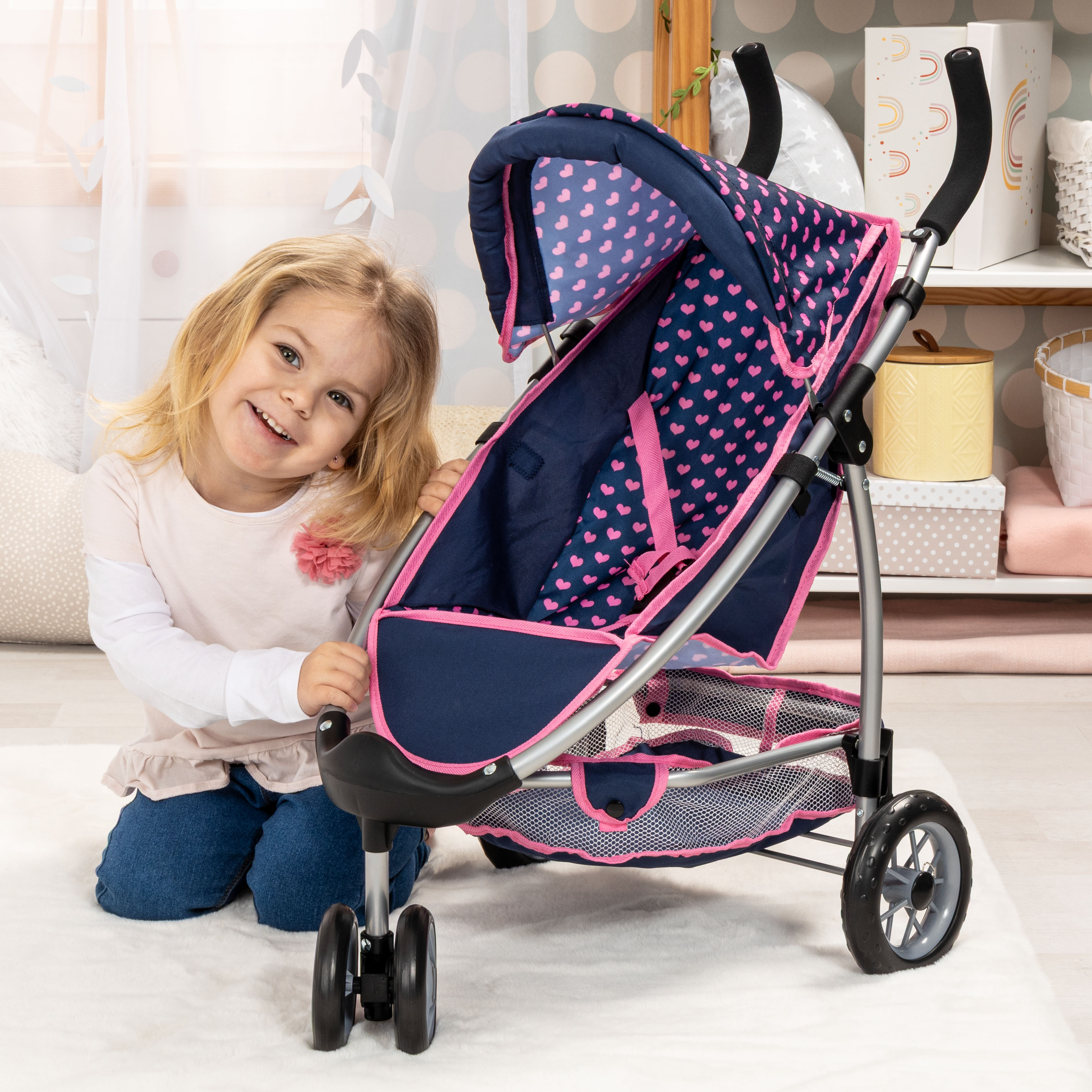 Dieser moderne Puppenjogger ist genau das Richtige für kleine Puppeneltern. Der Jogger hat ein Sonnendach und bietet Platz für Puppen bis ca. 46 cm. Dank des Gurtes ist die Puppe vor dem Herausfallen geschützt. Durch die leichtgängigen beweglichen Vorderräder und dem schönen Softgriff wird jeder Spaziergang zum freudigen Ereignis. Im integrierten Einkaufskorb kann alles Wichtige mitgenommen werden, was für den Ausflug benötigt wird.