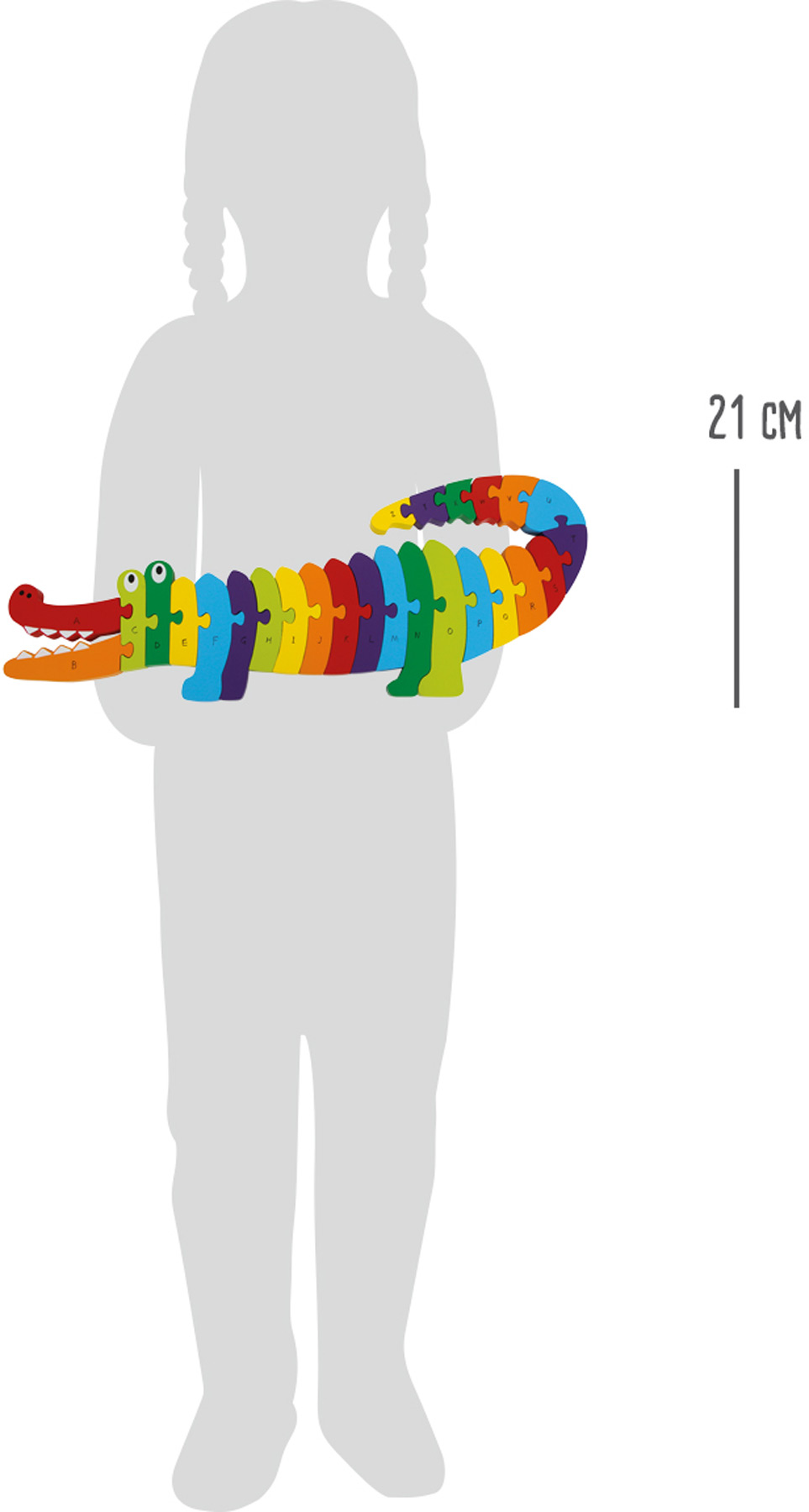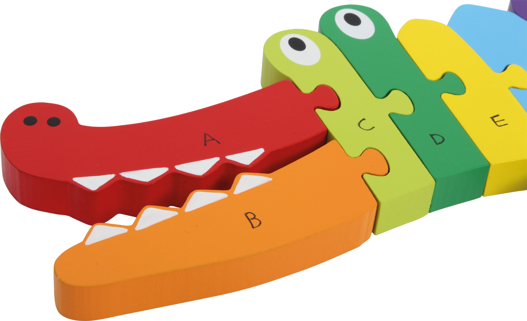 Dieses lustige Krokodil besteht aus 26 farbenfrohen Teilen, die jeweils mit einem Buchstaben versehen sind. Nun gilt es, das Tier in seine rechte Form und das ABC in die richtige Reihenfolge zu setzen.