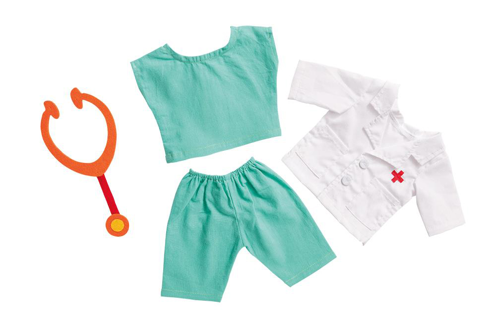 Jedes Kind taucht gerne in Rollenspiele ein. Mit dem tollen Arzt-Outfit von Heless können schon die Kleinsten ihre Puppe fantasievoll verkleiden und mit ihr als Arzt oder Ärztin die Liebsten versorgen. Das Puppenoutfit besteht aus vier Teilen: Hose, Hemd, Arztkittel und Stethoskop aus Filzmaterial.