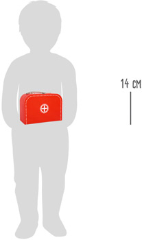 Inhalt: 1 Arztkoffer, 1 Notizbrett, 1 Spritze, 1 Stethoskop, 1 Thermometer, 1 Reflexhammer, 1 Medizindose, 1 Tube, 1 Skalpell.