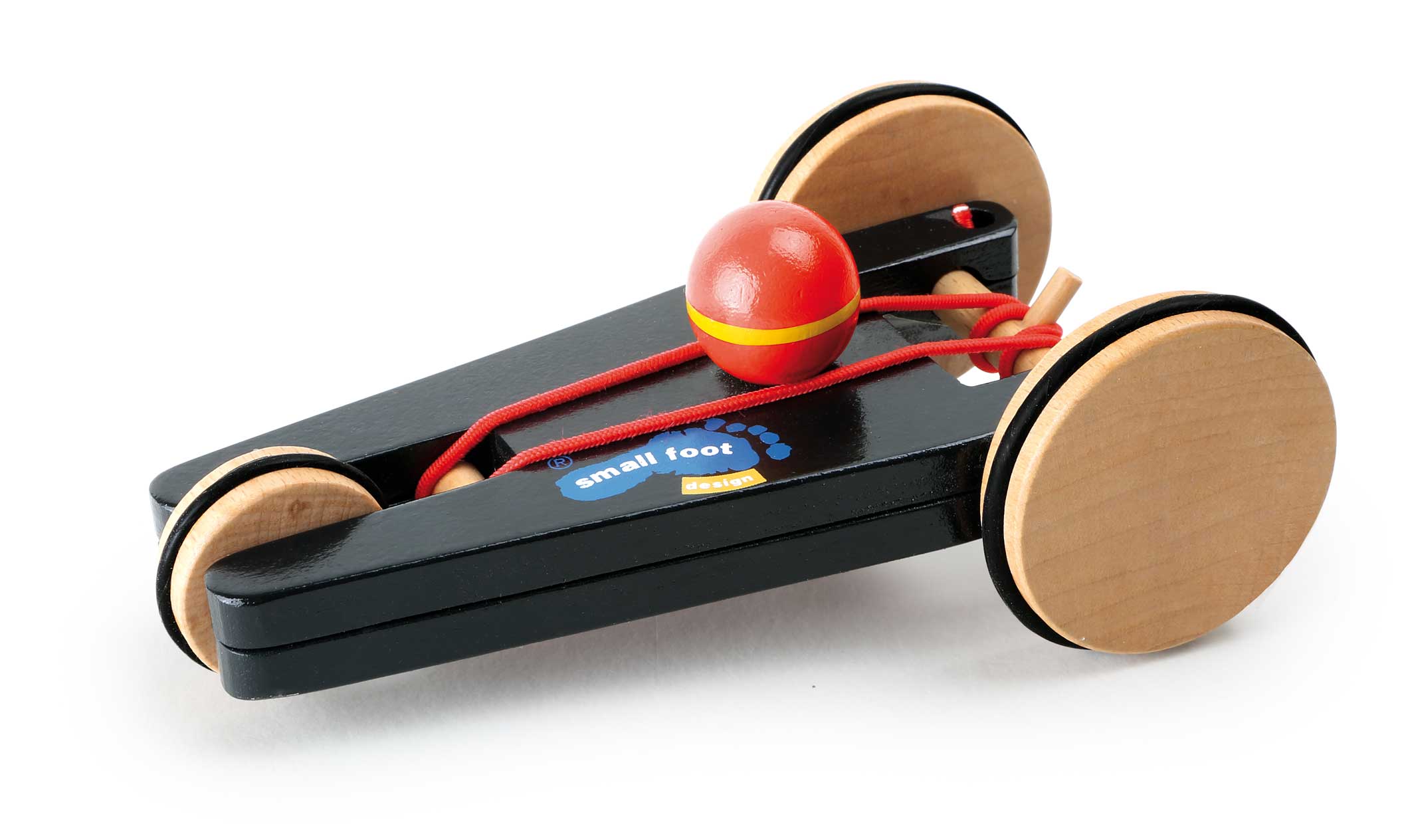 Sportlich, sportlich! Dieses Aufziehauto aus Holz liegt mit seinen drei gummibereiften Rädern extrem schnittig auf der Bahn! Der Clou: Durch ein Gummiband und eine kleine Holzvorrichtung lässt es sich mit den Hinterreifen aufziehen. Wird es losgelassen, ist es nicht mehr zu bremsen.