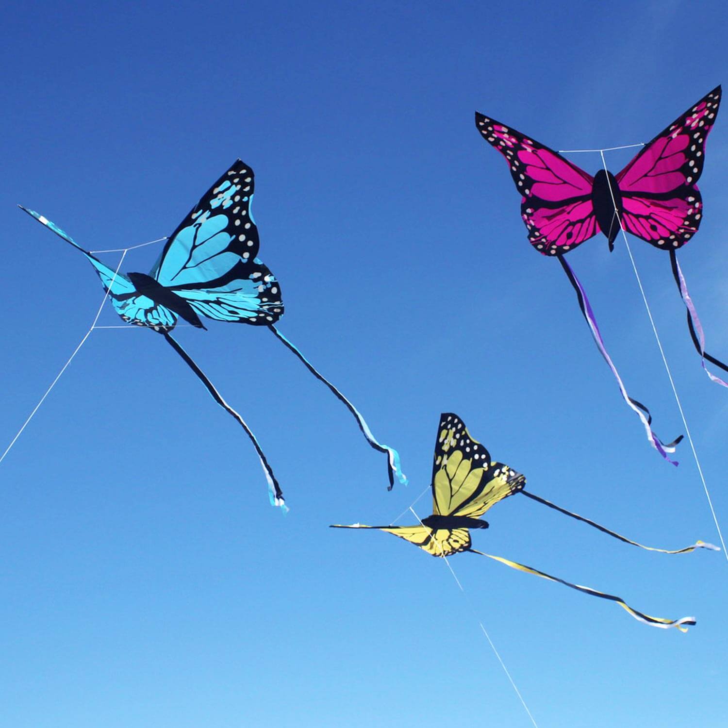 Die bunten Drachenschwänze verleihen unserem kleinen Wolkenstürmer nicht nur das gewisse Extra an Style, sondern sorgen auch für eine verbesserte Stabilität in der Luft. Bella Butterfly ist so konstruiert, dass er bereits bei einer sanften Brise von nur 1 Beaufort abheben kann. Sein geringes Gewicht und sein einfaches Handling machen ihn zum idealen Begleiter für Kinder.