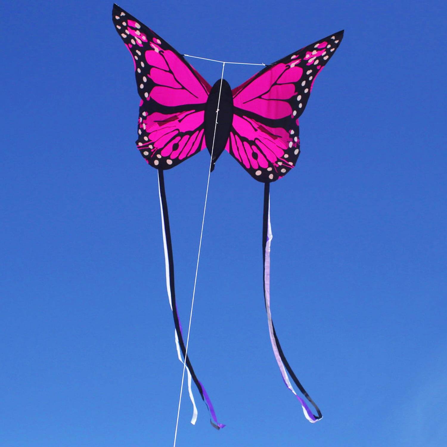Ahoi, kleine Flugkapitäne! Bella Butterfly, unser hinreißender Schmetterlingsdrachen in Pink, erobert die Lüfte und alle Blicke im Sturm! Sein Design und die beiden langen Drachenschwänze, die an den Flügeln befestigt sind, machen ihn zu einem wahren Hingucker am Himmel.