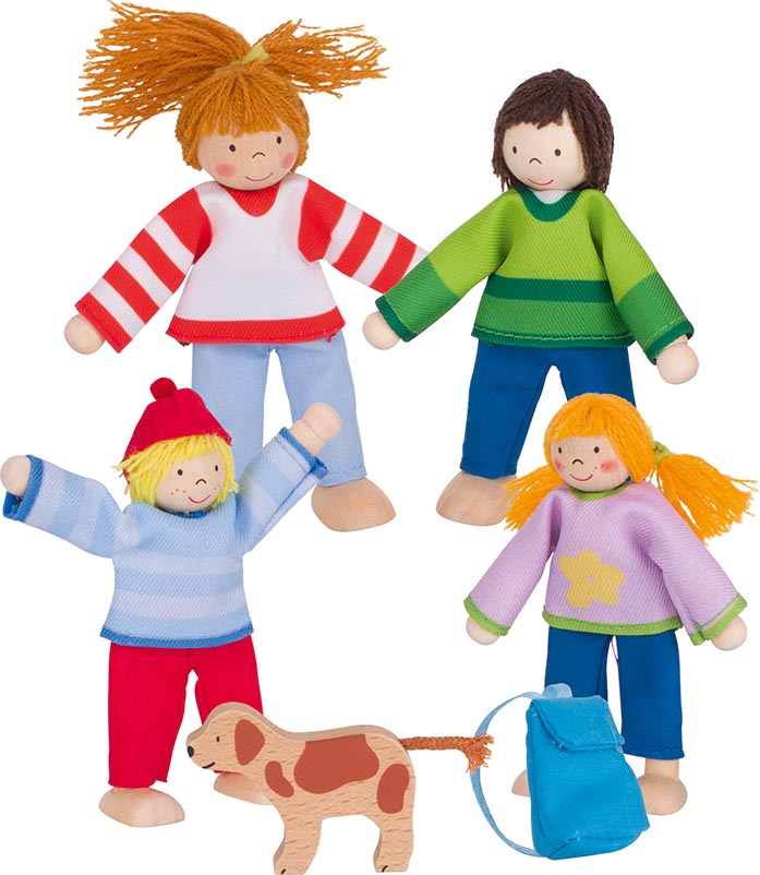 Die hölzernen Puppen sind leicht beweglich. Sie können sitzen und stehen und machen das Spielen so lebendiger. Sie passen zudem in alle goki-Puppenhäuser.