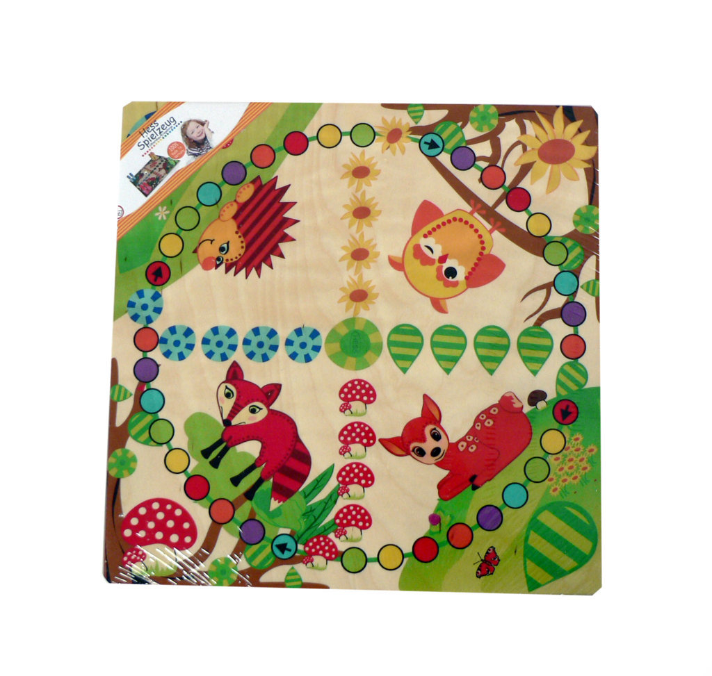 Bunt bedrucktes Brettspiel für 4 Personen mit Spaßgarantie aus Birkenleimholz.