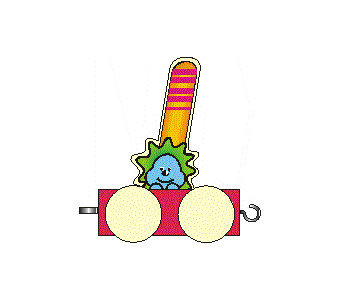 Farbiger Buchstabe aus Birkenleimholz auf Rädern, farblich sortiert.