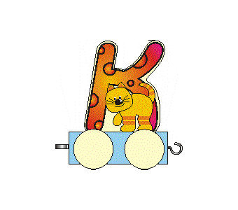 Farbiger Buchstabe aus Birkenleimholz auf Rädern, farblich sortiert.