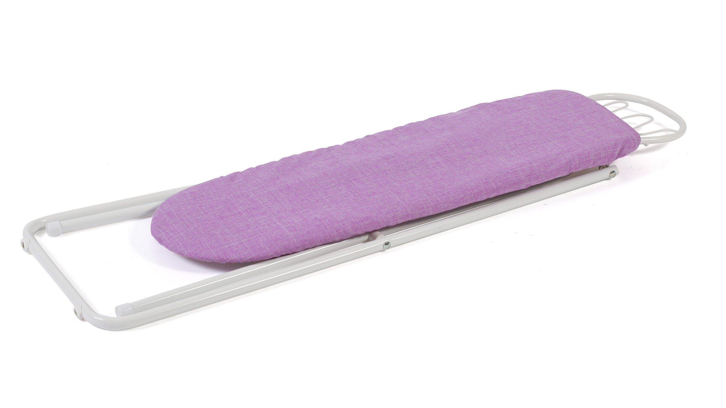 3-fach höhenverstellbares Bügelbrett mit Ablage für ein Bügeleisen. Arbeitshöhe ca. 51, 55 oder 58 cm höhenverstellbar. Zusammenklappbar (Klappmaß: 83 x 25 x 3 cm); Artikelmaße: 70 x 26 x 51/55/58 cm; Gewicht: 1,9 kg