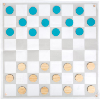 Spieleklassiker im Doppelpack und Großformat können mit diesem Set gespielt werden! Das Outdoor-geeignete Spielfeld wird durch vier Holzstäbe im Boden festgesteckt. Die Spielsteine aus FSC® 100%-zertifiziertem Holz sind gut sichtbar in hellblau gehalten.