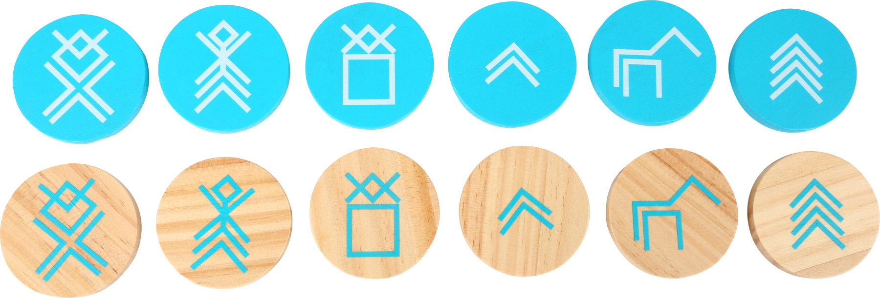 Inhalt: 32 Spielsteine, 1 Spielfeld, 4 Pflöcke zur Feldbefestigung
