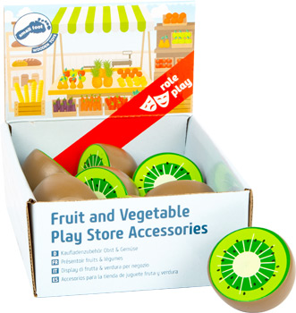 9 Kiwis. In einem gut sortierten Tante Emma-Laden darf gesundes Obst und Gemüse nicht fehlen. Aus robustem Holz und in tollen Farben kann es durch die Displays sehr gut in das passende Holzregal gestellt werden.