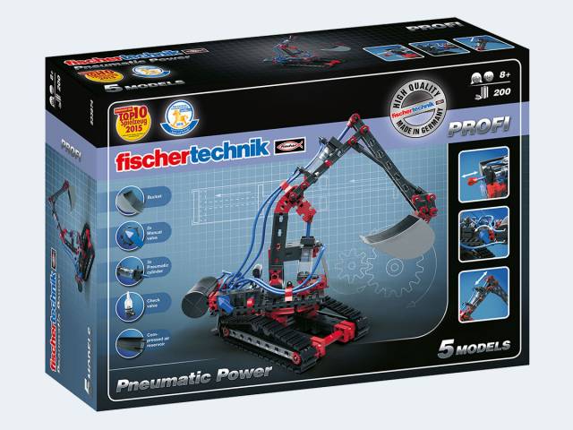 Der preisgünstige Baukasten Pneumatic Power vermittelt spielerisch die Grundlagen der Pneumatik und zeigt anhand von realitätsnahen Modellen die Funktionsweise von Pneumatikventilen und -zylindern.