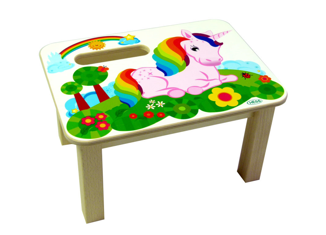 Diese stabile Fussbank mit Eingriffsloch aus Holz hat eine Größe von ca. 33 x 24 x 19 cm und ist ein toller Blickfang für das Kinderzimmer.
