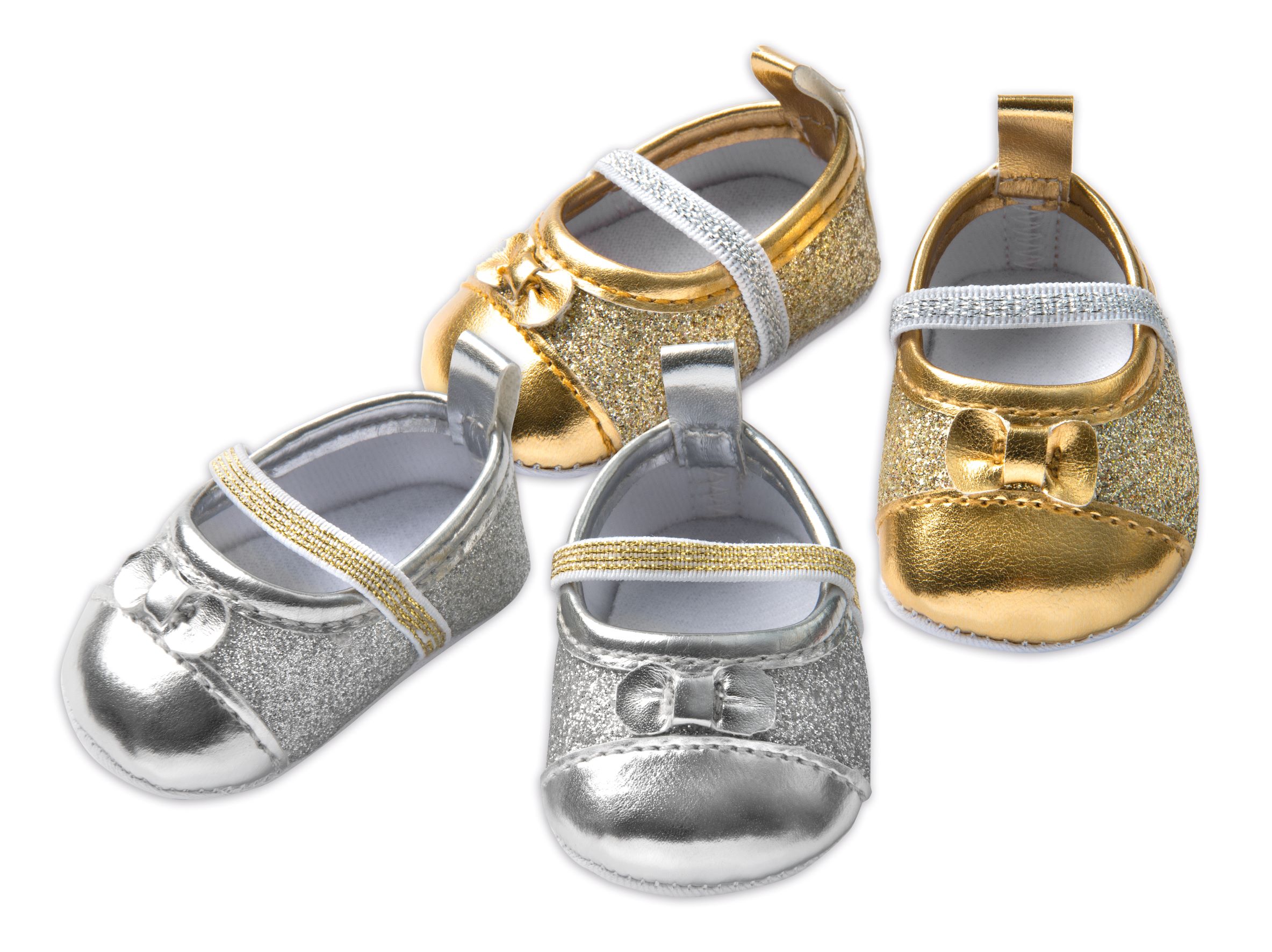 - glamouröse, funkelnde Puppenschuhe in silber