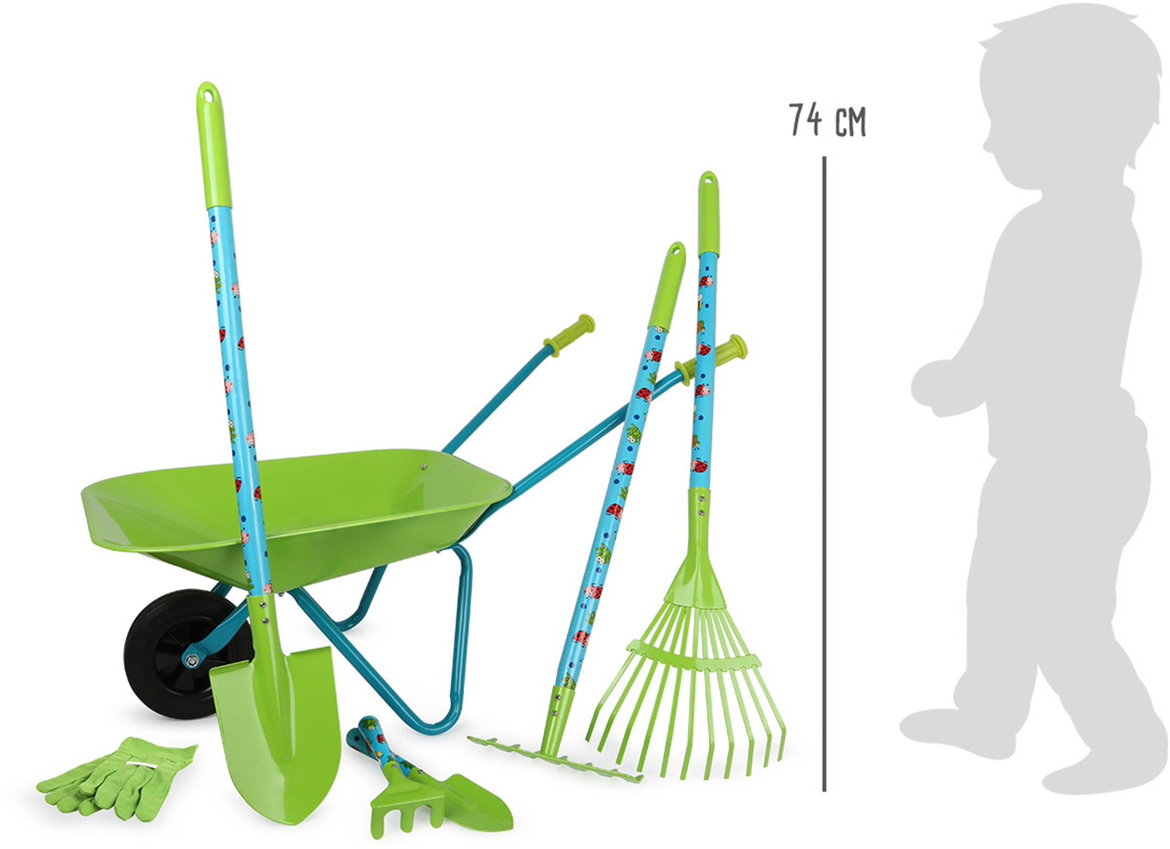 Ab ins Beet! Mit diesem Garten-Set kommen kleine Nachwuchsgärtner auf ihre Kosten. Gartenhandschuhe angezogen und ab geht’s mit Harke, Rechen, Spaten, Schubkarre & Co. zum nächsten Einsatzort. So können die kleinen Gartenzwerge erste Erfahrungen bei der Gartenarbeit sammeln und ihren Eltern unterstützend zur Seite stehen. Alle Bestandteile sind aus hochwertig verarbeitetem Metall und durch ihr kindgerechtes Design und die frühlingshaften Farben ein Must-have Artikel für die Outdoorsaison.