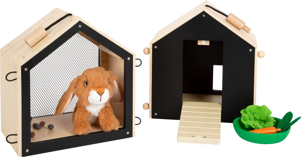 Der moderne Hasenstall ist die ideale Ergänzung fürs Rollenspielsortiment rund um das Thema Haustiere und Tierpflege.