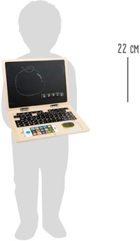 Ein Holz-Laptop für die Kleinen. Die Buchstaben, Satzzeichen und Zahlen sind magnetisch - so lassen sich ganz leicht erste Wörter und Matheaufgaben auf der Magnettafel befestigen. Mit der Kreide sind flink ein paar Bilder und Worte auf den "Bildschirm" gemalt. Das Schwämmchen wischt alles wieder weg. Ein zeitgemäßes Smartphone aus Holz rundet dieses tolle Lernspiel ab. Durch die kompakte Größe leicht zu transportieren - perfekt geeignet für unterwegs.