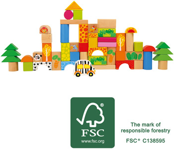 Hochstapler aufgepasst! Massive Holzbausteine aus FSC® 100%-zertifiziertem Holz sind mit niedlichen Zootieren bedruckt und zaubern eine tolle Zoolandschaft. Die Bausteine lassen sich gut greifen und fördern ganz nebenbei die Feinmotorik.