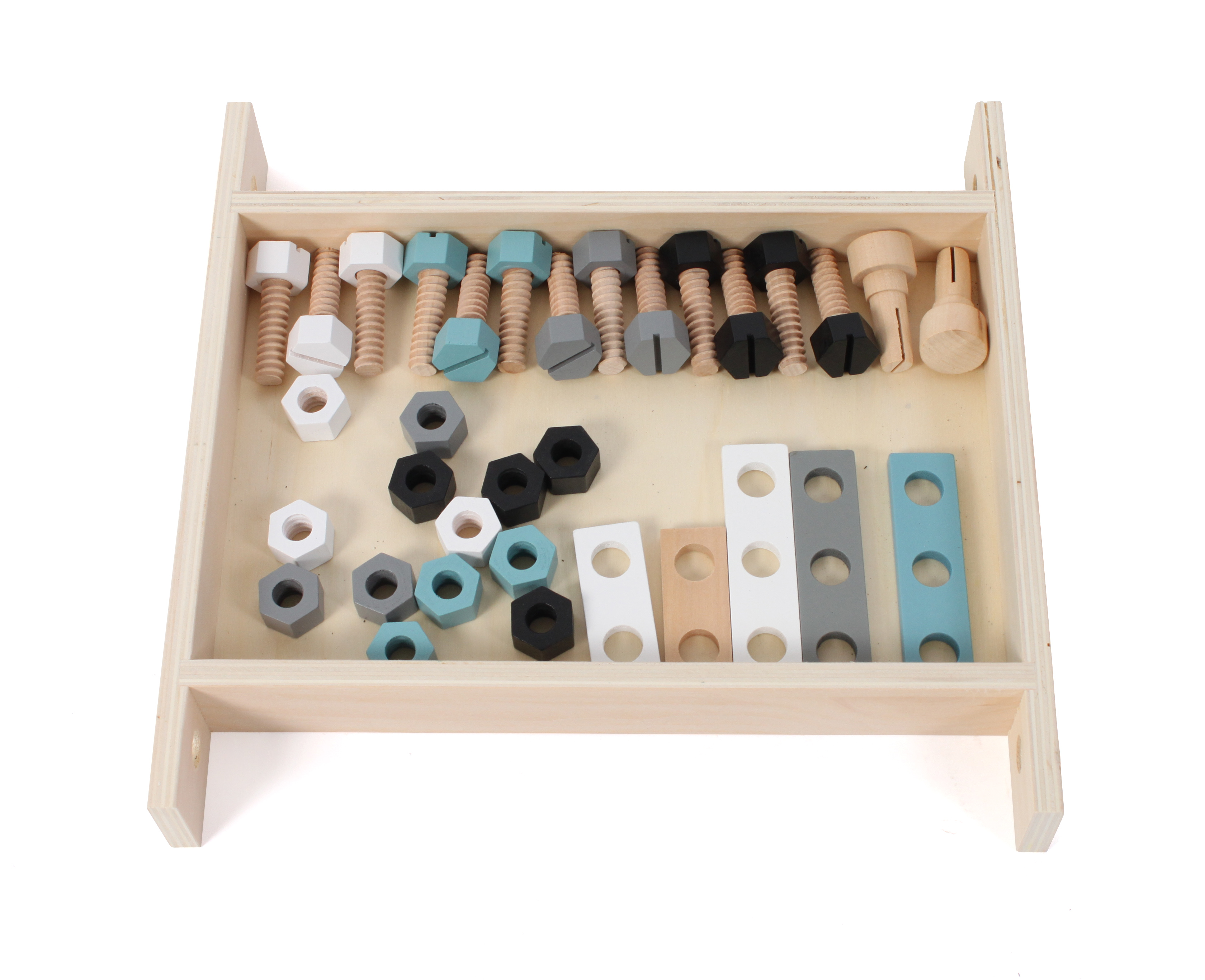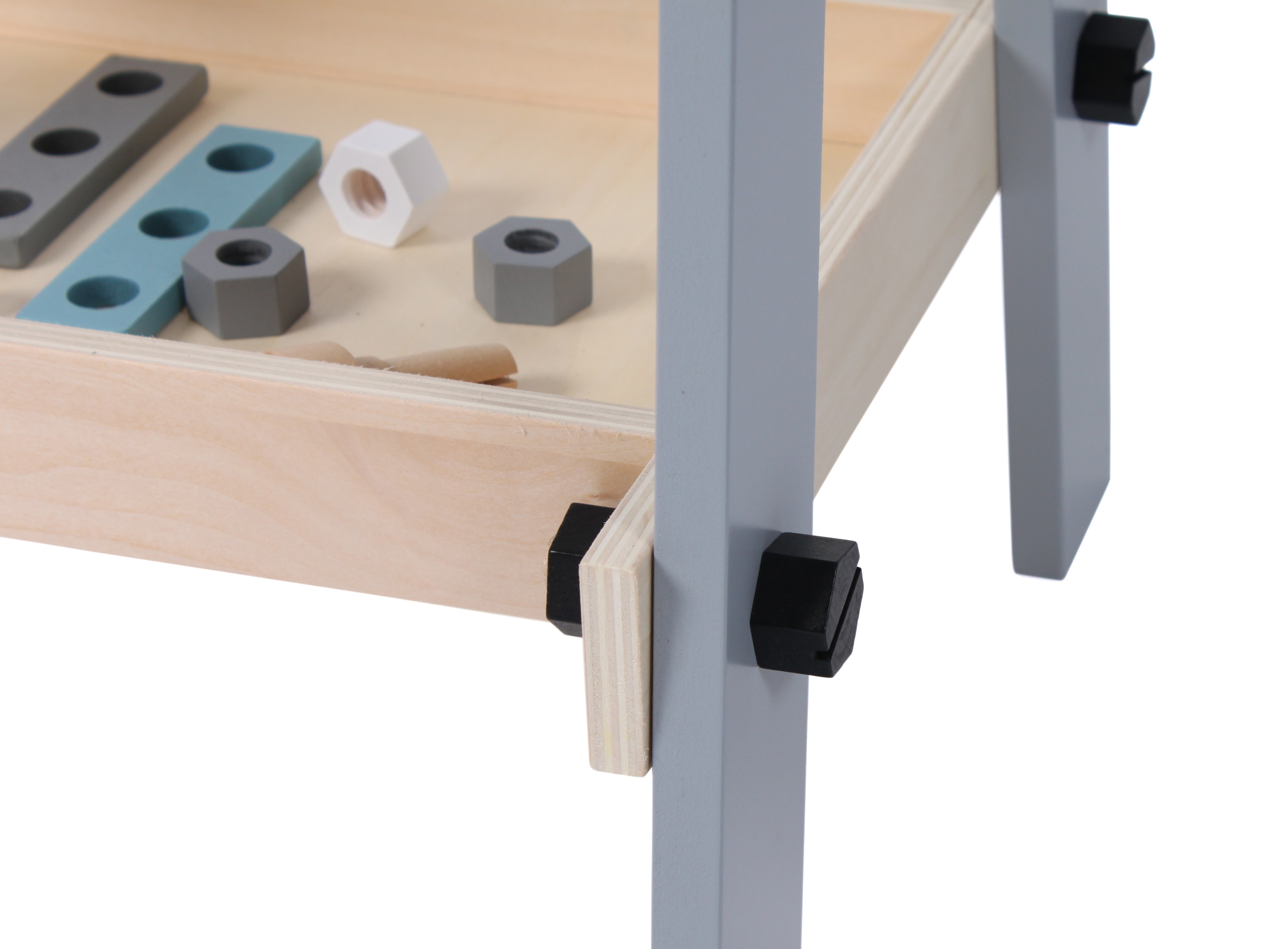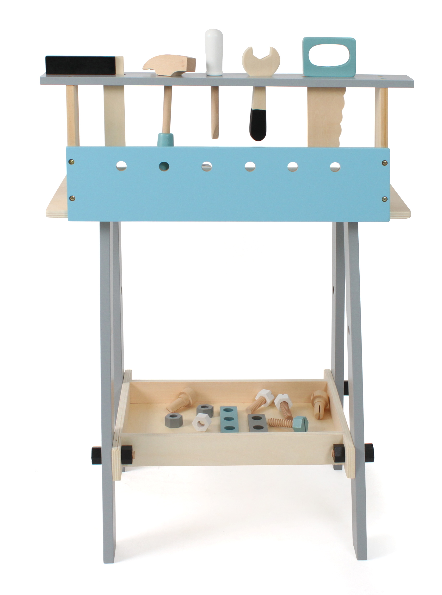 Kleine Handwerker werden von dieser Holzwerkbank begeistert sein, denn sie ist den echten zum Verwechseln ähnlich und super ausgestattet. Die große Arbeitsfläche mit Maßangabe und Schraubstock bietet jede Menge Platz, um Werkstücke präzise herzustellen. Durch die Löcher können Schrauben und Muttern in Tisch und Rückwand befestigt werden. Das Zubehör umfasst einen Schraubendreher, einen Hammer, einen Maulschlüssel, eine Säge, ein Lineal sowie Schrauben, Muttern und Verbindungselemente. Nötiger Stauraum wird im großen Ablagefach geboten. Artikelmaße 53 x 33 x 74 cm, Gewicht: 4,2 kg