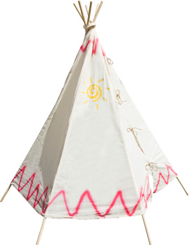 Die Behausung für die kleinen „Wilden“. Mit farbigen Indianermotiven.