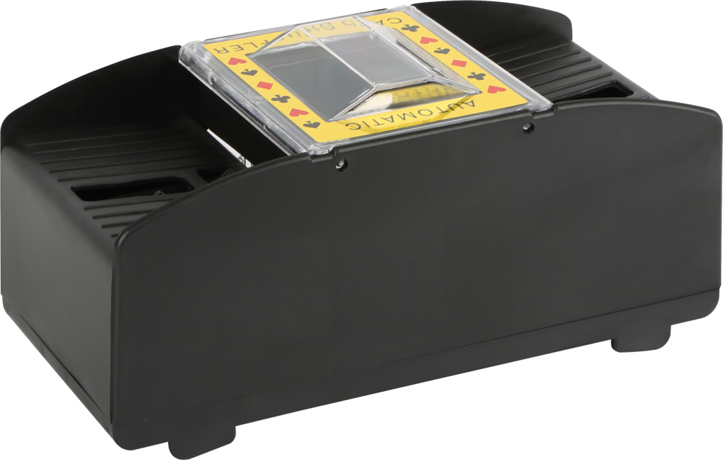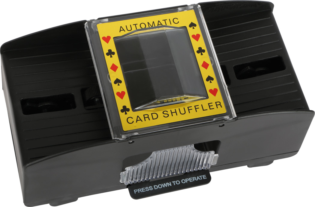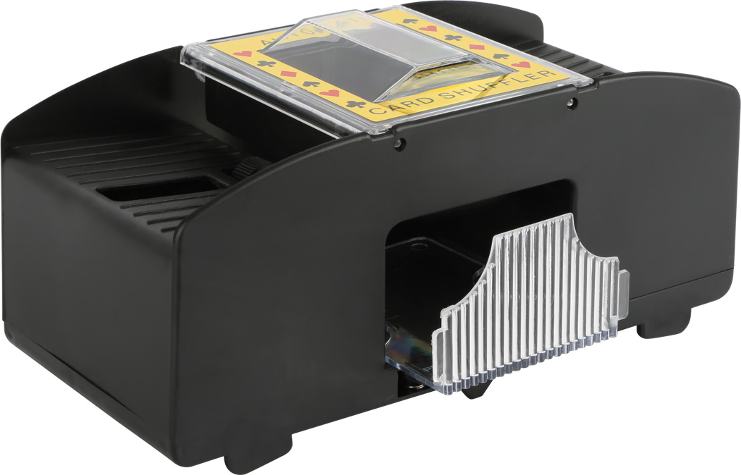 Optimale Kartenanzahl zum Mischen sind 64 Spielkarten. Batterien nicht enthalten. Kinderleicht mischen wie die Profis! Mit dieser Spielkartenmischmaschine können Spielkarten aller bekannten Kartenspiele auf Knopfdruck gemischt werden. Der Kartenmischer ist mit zwei Einlagefächern und einem Ausgabefach ausgestattet und für Kinder ganz einfach selbst zu bedienen. Ideal für alle kleinen Kartenspieler, die einen Stapel Karten noch nicht selbst mischen können. Für Spiele wie Skat, Mau-Mau, Rommé oder Uno.