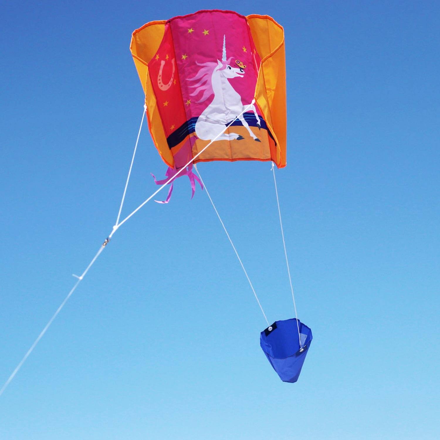 Der farbenfrohe Kinderdrachen ist mit dem Einhorn-Motiv besonders bei Mädchen sehr beliebt! Schon kleine Piloten ab 3 Jahren können den rosafarbenen Kinderdrachen steigen lassen. Dabei ist die Handhabung des kleinen Sled sehr einfach gestaltet. Außerdem ist kein großer Aufbau notwendig, sodass der Flugspaß direkt starten kann! Drachen auspacken, die Schnur abwickeln und den Sled in die Luft ziehen. Der Einleiner Drachen lässt sich einfach fliegen und kommt ready to fly zu Dir nach Hause! Im Lieferumfang ist der Einleinerdrachen in Schlittenform, ein Handgriff sowie eine 40 m lange Polyesterschnur enthalten. Der Handgriff dient dabei der einfachen Handhabung beim Steuern. Für den Transport wird der federleichte Drachen im Drachenschwanz klein verstaut, damit er geschützt bleibt und Du ihn überall mit hinnehmen kannst. Ausgebreitet ist der stablose Drachen 65 x 44 cm klein und fliegt sowohl bei wenig als auch bei viel Wind stabil am Himmel. Durch den Schleppschwanz oder auch Tütenschwanz genannt, erhält der Drachen zusätzlich Stabilität und fliegt bei Windstärken von 1 - 4 Bft. wunderschön in der Luft. Wer möchte, kann den Drachen mit dem weißen Einhorn auch an einem Bodenstecker befestigen, sodass er allein am Himmel fliegt, ohne dass Du ihn festhalten musst. Eine sehr schöne Geschenkidee für Kinder bis 6 Jahre. Weitere Drachenmotive von unserem Schlittendrachen oder Sled Drachen genannt, findet ihr in unserem Onlineshop.