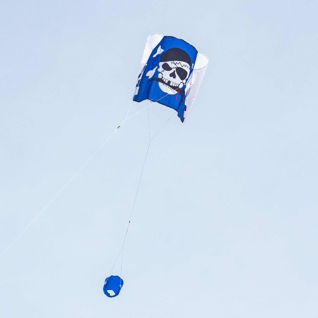 Mit seiner Größe von 65 x 44 cm und dem leichten Gewicht von unter 100 g lässt er sich wunderbar und leicht fliegen. Unser Einleinerdrachen mit Piratenmotiv hebt sogar schon bei 1 Bft. ab, ist aber auch bei viel Wind stabil am Himmel. Außerdem kommt der Drachen ohne Gestänge aus und ist somit sehr robust und widerstandsfähig. Durch die beiden Luftkammern am Drachen pustet sich der Drachen auf, sodass Du das Drachenmotiv wunderbar am Himmel sehen kannst. So bietet der Sled einen riesen Flugspaß für die kleine Piloten.