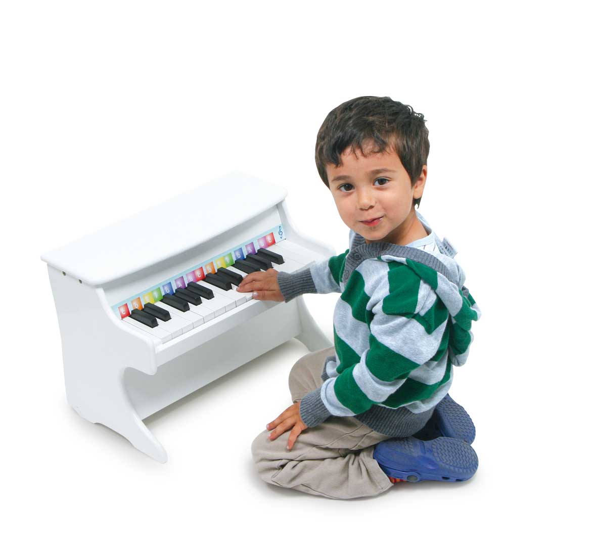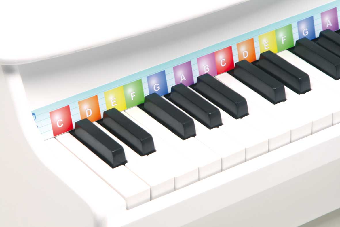 Ein Musikspielzeug der Extra-Klasse ist dieses weiße Klavier! Hier können kleine Pianisten ihre Liebe zur Musik entdecken und dank der in farbigen Feldern angezeigten Noten, auch schnell einige Lieder „auswendig“ nachspielen. Dank der starken Bauweise und dem „großen“ Klangraum, werden hier Mozart, Udo Jürgens oder Jerry Lee Lewis in die Kinderzimmer Einzug halten!