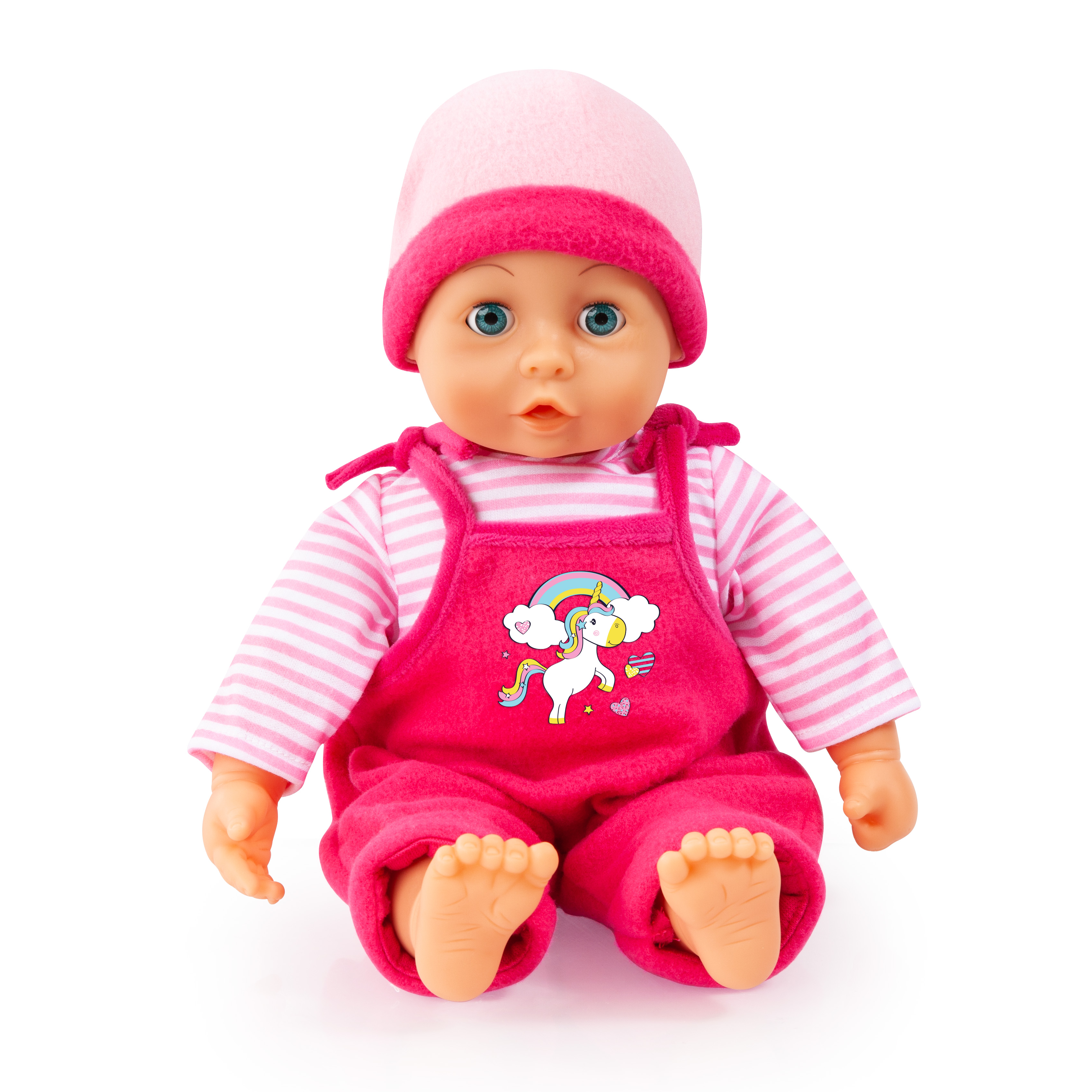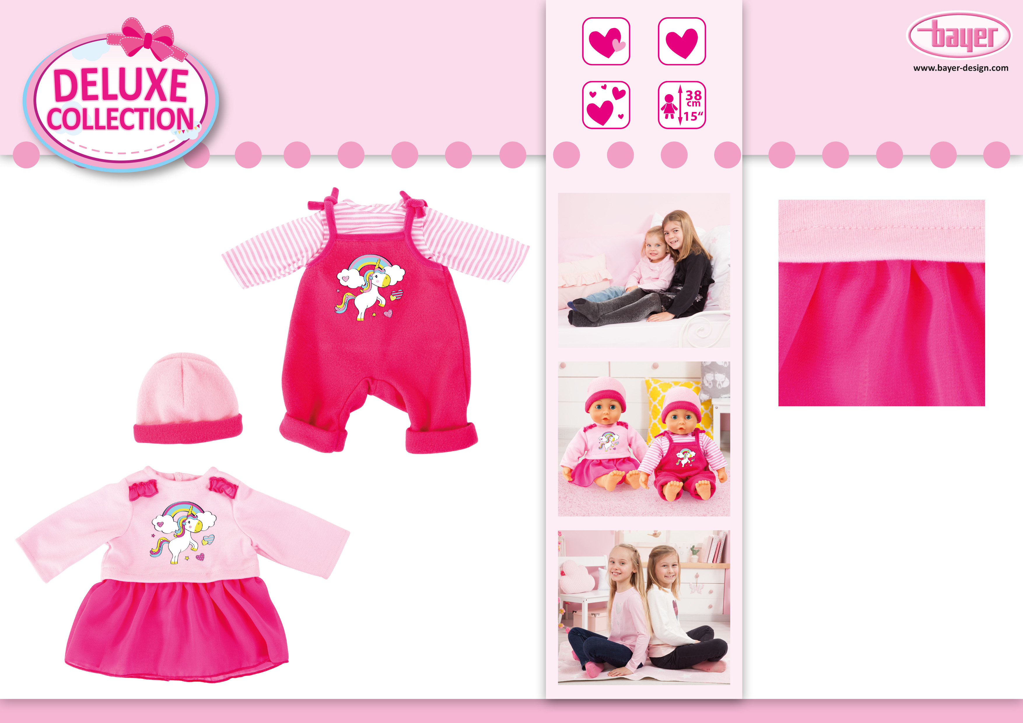 Diese tolle vierteilige Puppenkleidung ist mit viel Liebe zum Detail gemacht. Der fröhlich, passende Farbmix kommt mit Latzhose, Oberteil, Mütze und Kleid. Das Outfit wird durch das wunderschöne Motiv an der Latzhose sowie dem Kleid abgerundet. Durch den Klettverschluss wird das Anziehen für kleine Kinderhände besonders leicht gemacht. Mit der Puppenkleidung kann der Lieblingspuppe nicht nur ein individuelles Aussehen gegeben werden, sondern es wird zudem spielerisch die Fingerfertigkeit der Kinder geübt. Die Puppenkleidung ist für Puppen von 33 cm bis 38 cm geeignet.