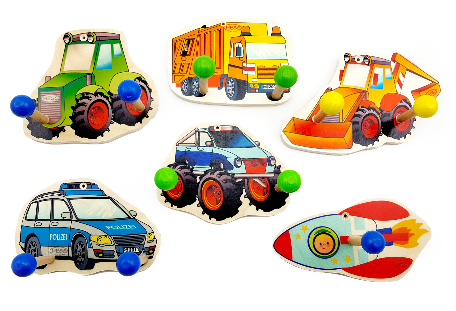 Die bunte Garderobe aus Holz ist ein absoluter Blickfang in jedem Kinderzimmer oder Flur. Die lustigen Motive und die farbenfrohe Gestaltung sorgen für eine freundliche Atmosphäre und gute Laune. Die liebevolle Gestaltung und das kindliche Design sorgt beim Anziehen für ein Lächeln. Wird sie in einer niedrigen Höhe aufgehängt, können die Kleinen sich schon bald ganz alleine ankleiden.