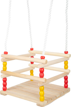 Hoch hinaus! Mit dieser Schaukel können schon Kleinkinder luftige Höhen erklimmen - mit einem Maximum an Sicherheit durch stabiles Holz und die vier geschlossenen Seiten. Schaukeln fördert die Entwicklung des Gleichgewichtssystems. Einfache Installation mit Befestigungsringen. Die Seile sind höhenverstellbar und können so individuell örtlichen Gegebenheiten angepasst werden. Belastbar bis 30 kg.