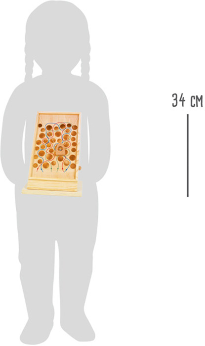 Welche Kugel schafft es ans Ziel? Bei diesem Geschicklichkeitsspiel aus Holz sind Konzentration und Geschick gefragt! Hier müssen die Kinder die Bänder fest im Griff haben, um das Holzschiffchen samt Kugel sicher auf den farbigen Pfaden an den Löchern vorbei zu manövrieren.
