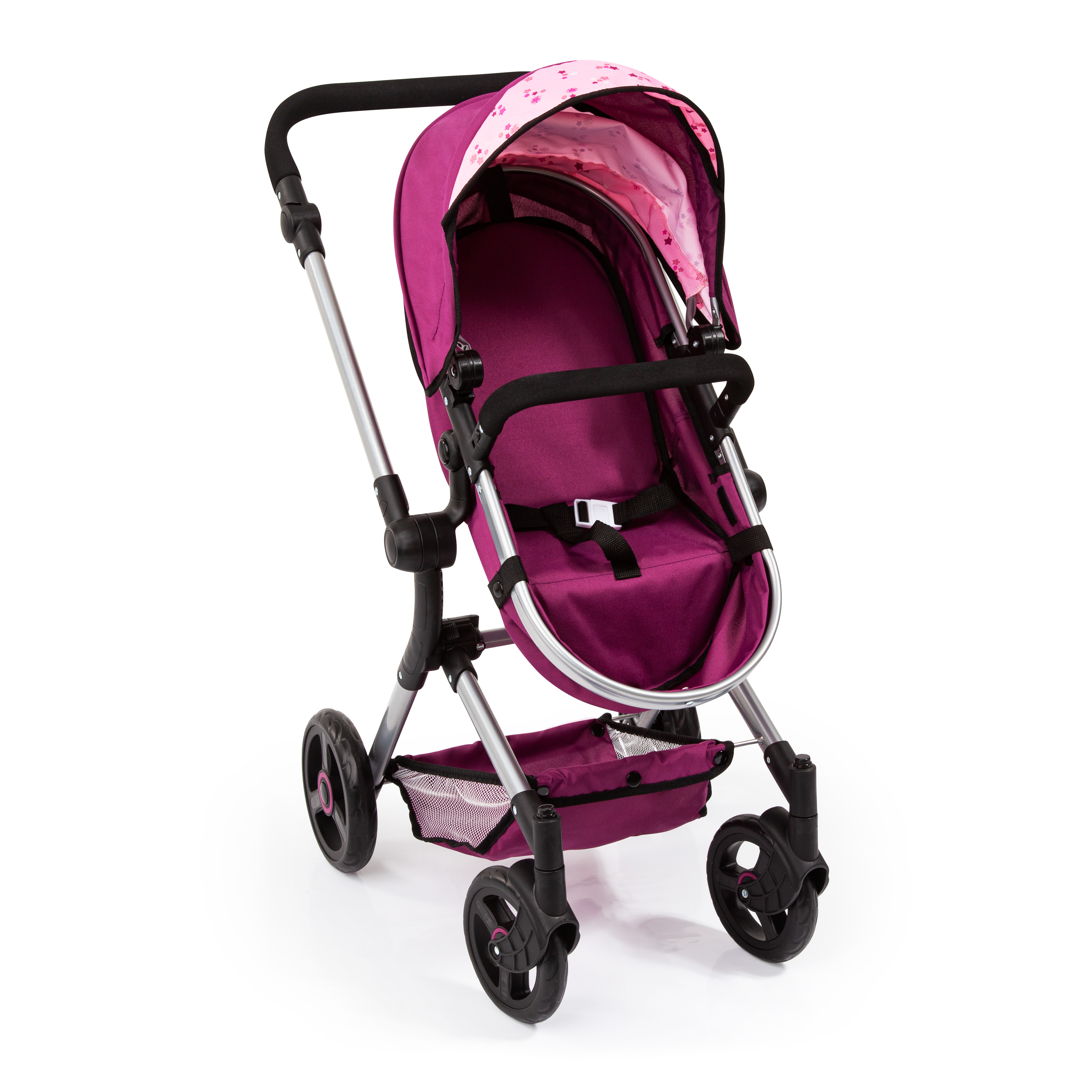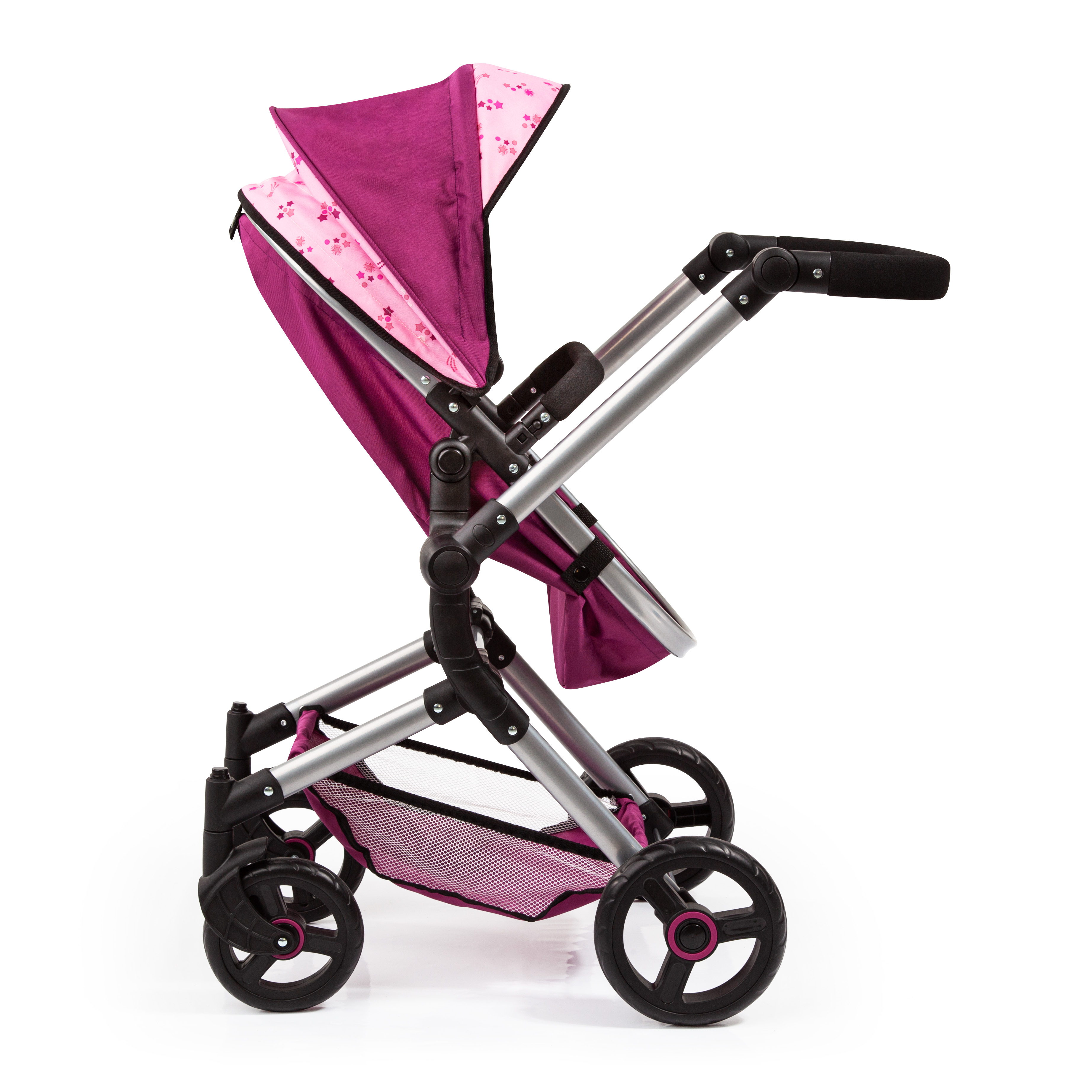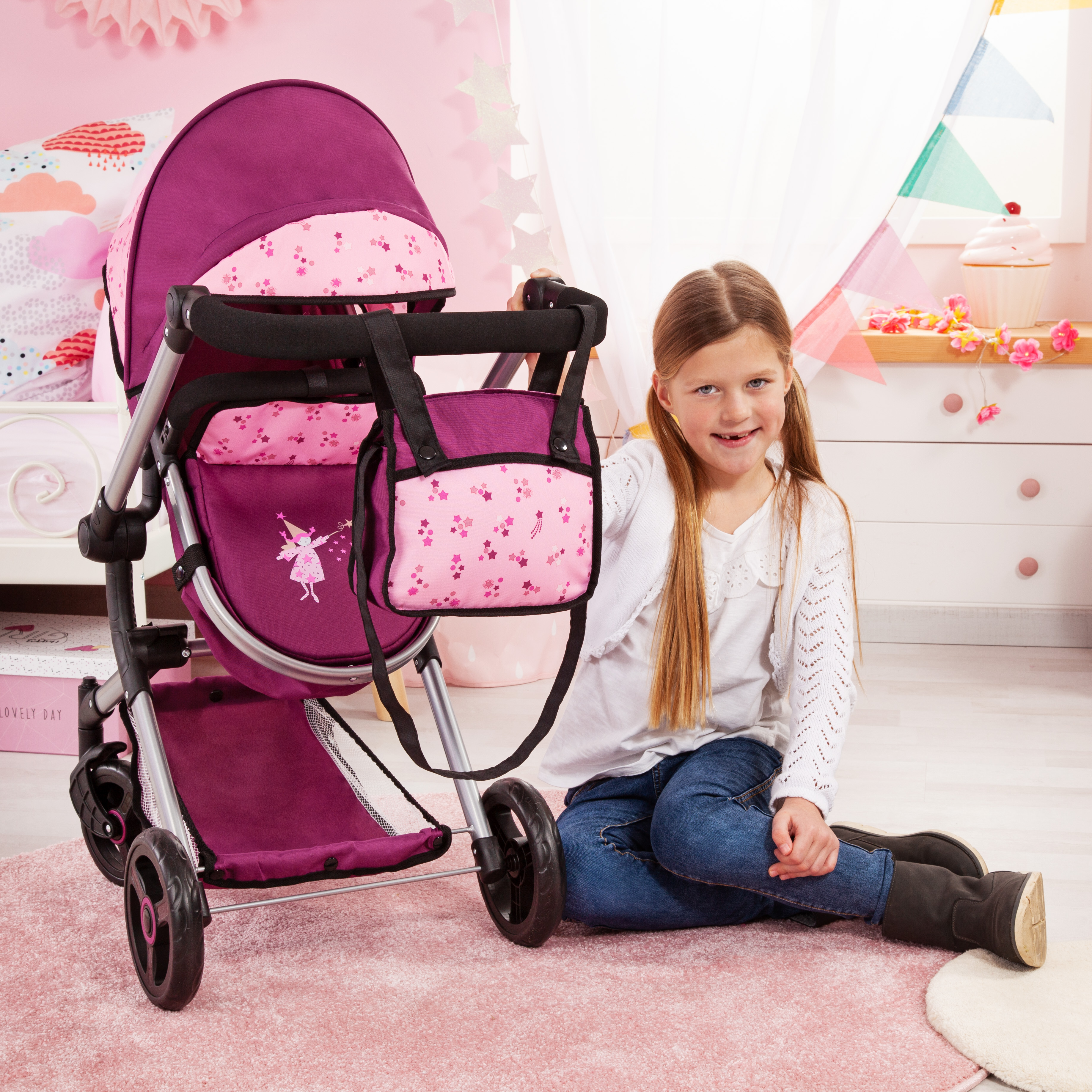 Neo Vario ist ein moderner Kombi Puppenwagen im trendy Design mit vielen Spielmöglichkeiten auch für große Kinder. In ihm können große Puppen mit einer Größe von bis zu 52 cm mitgenommen werden. Durch seinen höhenverstellbaren Griff 62 - 79 cm kann er optimal auf die entsprechende Kindergröße von z.B. 3 bis 6 oder 7 Jahren angepasst werden. Die Wanne des Wagens kann in Fahrtrichtung als auch in Richtung des Kindes aufgesteckt werden. Außerdem ist der Schieber zum Schwenken, so dass der Puppenwagen von beiden Seiten gefahren werden kann. Zudem kann die Wanne durch Druckknöpfe und durch die einfache Positionswandlung leicht zu einem modernen Sportwagen oder stabilen Puppenjogger umfunktioniert werden. Die Abdeckung der Wanne ist ideal, um die Puppe sowohl in liegender Position als auch in sitzender Position vor Witterungseinflüssen wie Sonne oder Wind zu schützen. Schwenkbare Vorderräder im modernen 2-farbigen Look machen ihn besonders wendig. Die mitgelieferte hochwertige Wickeltasche oder Einkaufstasche ist farblich auf den Wagen abgestimmt. Sie besitzt einen Reißverschluss zum Verschließen und kann sowohl als Umhängetasche (langer Henkel) oder auch als Handtasche - (2 kurze Henkel sind zusätzlich vorhanden) - genutzt werden. Neben der Tasche bietet auch der im Vario integrierte Ablagekorb bzw. Einkaufskorb viel Platz für weitere Spielutensilien. Für den Transport lässt sich der Puppenwagen Vario sehr einfach zusammenklappen.
