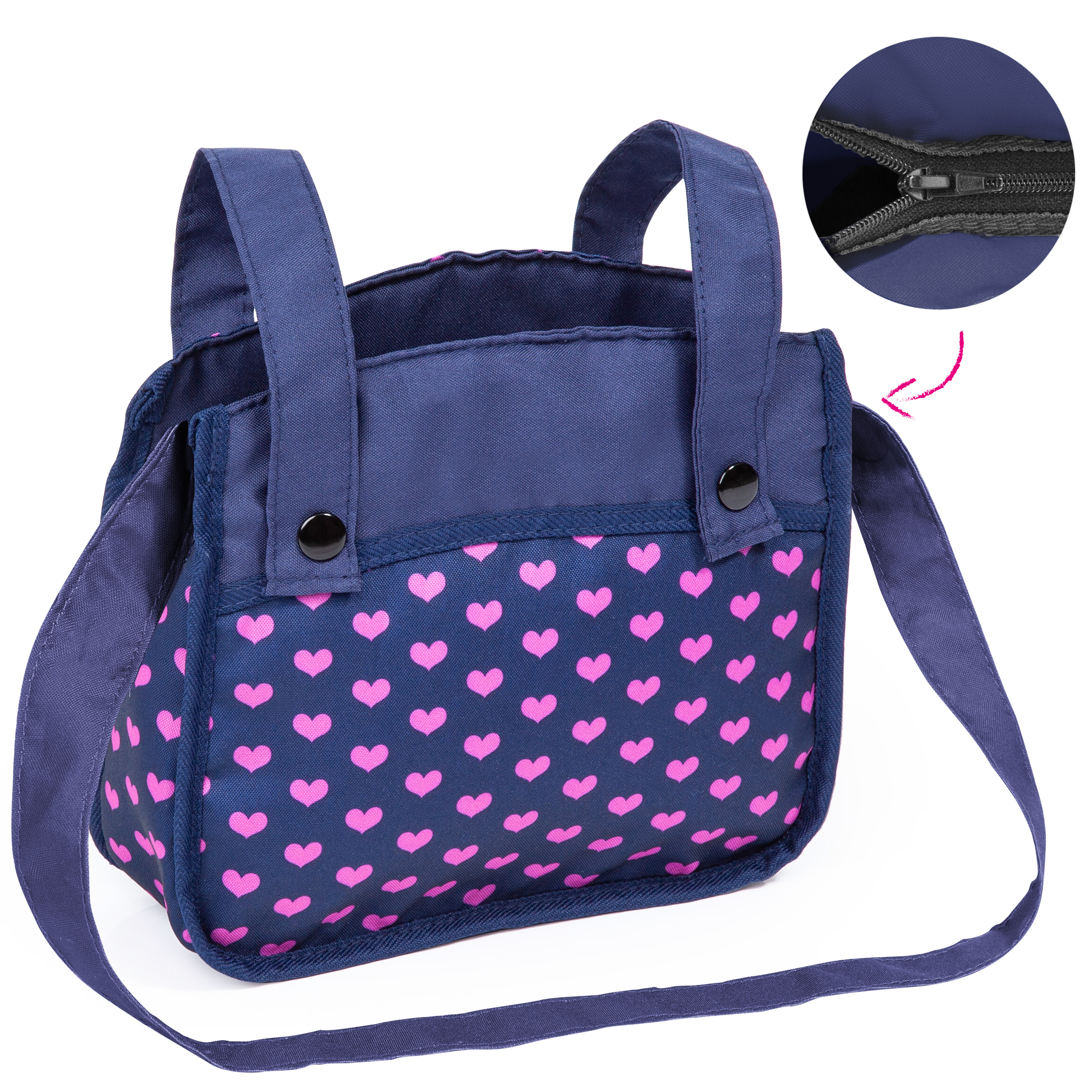 Vario ist ein moderner Kombi-Puppenwagen mit trendigem Design. In ihm können Puppen mit einer Größe von bis zu 52 cm mitgenommen werden. Durch seinen höhenverstellbaren Griff 62 - 79 cm kann er optimal auf die entsprechende Kindergröße angepasst werden. Die Wanne des Wagens kann in Fahrtrichtung als auch in Richtung des Kindes aufgesteckt werden. Außerdem ist der Schieber zu schwenken, so dass der Puppenwagen von beiden Seiten gefahren werden kann. Zudem kann die Wanne durch Druckknöpfe und durch die einfache Positionswandlung leicht zu einem Sportsitz umfunktioniert werden, der ebenfalls auf beide Seiten zeigen kann. Die Abdeckung der Wanne ist ideal, um die Puppe sowohl in liegender Position als auch in sitzender Position vor Witterungseinflüssen wie Sonne oder Wind zu schützen. Der Wagen besitzt unter anderem schwenkbare Vorderräder, die eine besonders leichte Kurvenfahrt ermöglichen. Für den Transport lässt sich der Puppenwagen Vario einfach zusammenklappen. Die mitgelieferte Tasche ist farblich auf den Wagen abgestimmt. Sie besitzt einen Reißverschluß zum Verschluß der Tasche und kann als Umhängetasche (langer Henkel) als auch als Handtasche - 2 kurze Henkel sind zusätzlich vorhanden - genutzt werden. Neben der Tasche bietet auch der im Vario integrierte Korb viel Platz für weitere Spielutensilien.