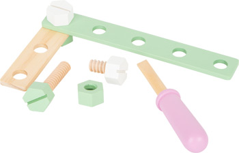 Bauen und Werkeln im nordischen Design! Mit Lochleisten, Gewindewürfeln, Schrauben, Muttern, Holzscheiben und Konstruktionsplatten können kleine Bauingenieure richtig loslegen. Mit Hilfe von Schraubenschlüssel und Schraubendreher werden alle Bauteile fachgerecht montiert. Egal ob Traktor, Lok oder Kran – der Kreativität sind keine Grenzen gesetzt. Mit den selbst konstruierten Modellen lässt sich anschließend toll spielen! Das perfekte Kreativspielzeug für kleine Baumeister! Mit diesem Konstruktionsbausatz aus Holz können sich kleine Tüftler selbst verwirklichen und individuelle Konstruktionen kreieren. Das Konstruktionsset umfasst 1 Schraubenschlüssel, 1 Schraubendreher, 2 Konstruktionsplatten, 7 Konstruktionswürfel, 14 Konstruktionsleisten, 21 Schrauben, 7 Muttern, 4 Räder/Scheiben, 4 Radadapter, 6 Abstandshülsen. Durch die reduzierte Farbgebung mit hohem sichtbarem Holzanteil passt das Set ideal zum skandinavischen Stil und fügt sich durch die klaren und reduzierten Farben gut in jeden Wohnraum ein.