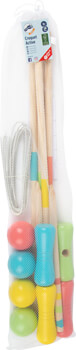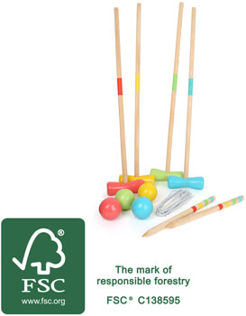 Ein Klassiker für den Garten. Beim Krocket-Spiel sind Geschick und Konzentration gefragt. Das Outdoor-Spiel aus FSC® 100%-zertifiziertem Holz ist ein großer Spaß für die ganze Familie. Die Parcours-Tore können mit mehr oder weniger Abstand und in unterschiedlichen Formationen ins Gras gesteckt werden, sodass unterschiedliche Schwierigkeitsstufen entstehen. Mit konzentrierten Manövern werden die Holzkugeln durch die Tore bugsiert. Dieses Krocket-Spiel überzeugt durch Stabilität und Abwechslung. Lasst die Spiele beginnen!