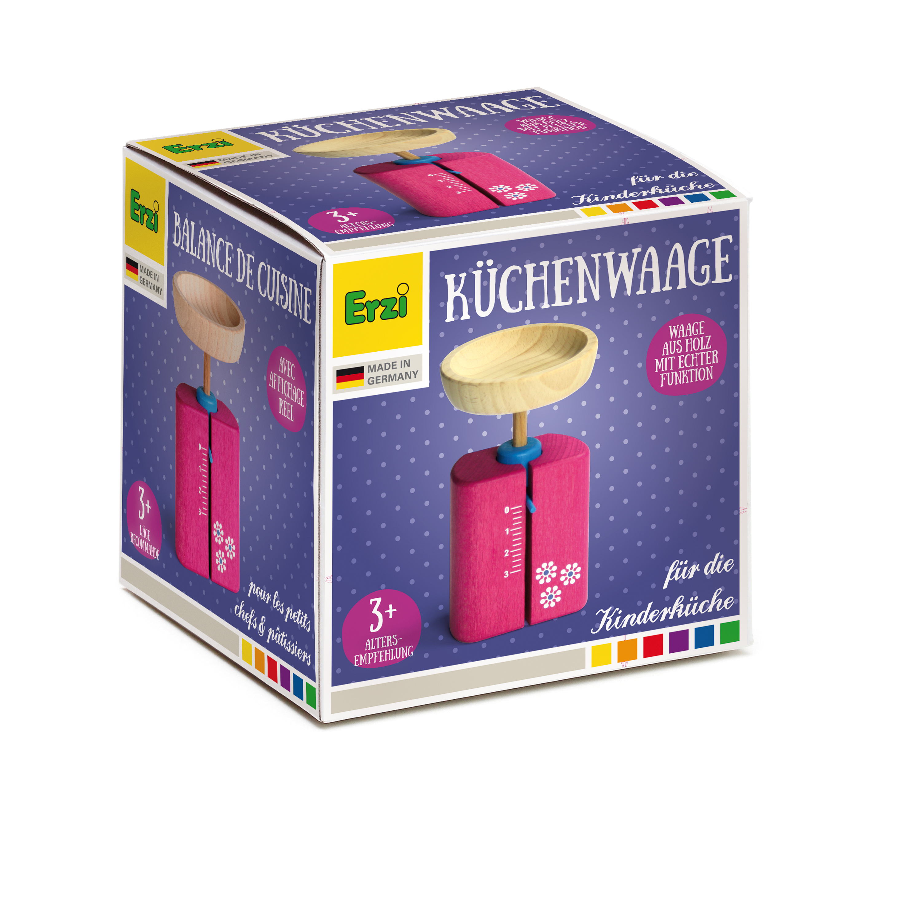 Mit der niedlichen Küchenwaage kann man seine Küchenausstattung komplettieren. Sie ist für kleine Köche und Bäcker unerlässlich. Mit echter Anzeige! Passend zum Erzi-Kochgeschirr.