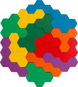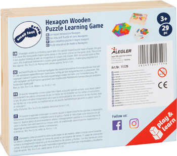 Sechseck-Puzzle als Denksportaufgabe! Bei diesem besonderen Formenpuzzle aus Holz gilt es, die komplexen wabenförmigen Spielsteine richtig auf den Aufgabenkarten zu platzieren. Das Legespiel trainiert räumliches Vorstellungsvermögen sowie die Farb- und Formerkennung. Mit zehn Aufgaben auf fünf Karten garantiert das traditionelle Mathematik-Lernpuzzlespiel endlosen, fordernden Spielspaß! Alle Bausteine und Aufgabenkarten sind in der Holzbox mit Schiebedeckel sicher verstaut und können so auch bequem unterwegs mitgenommen werden.