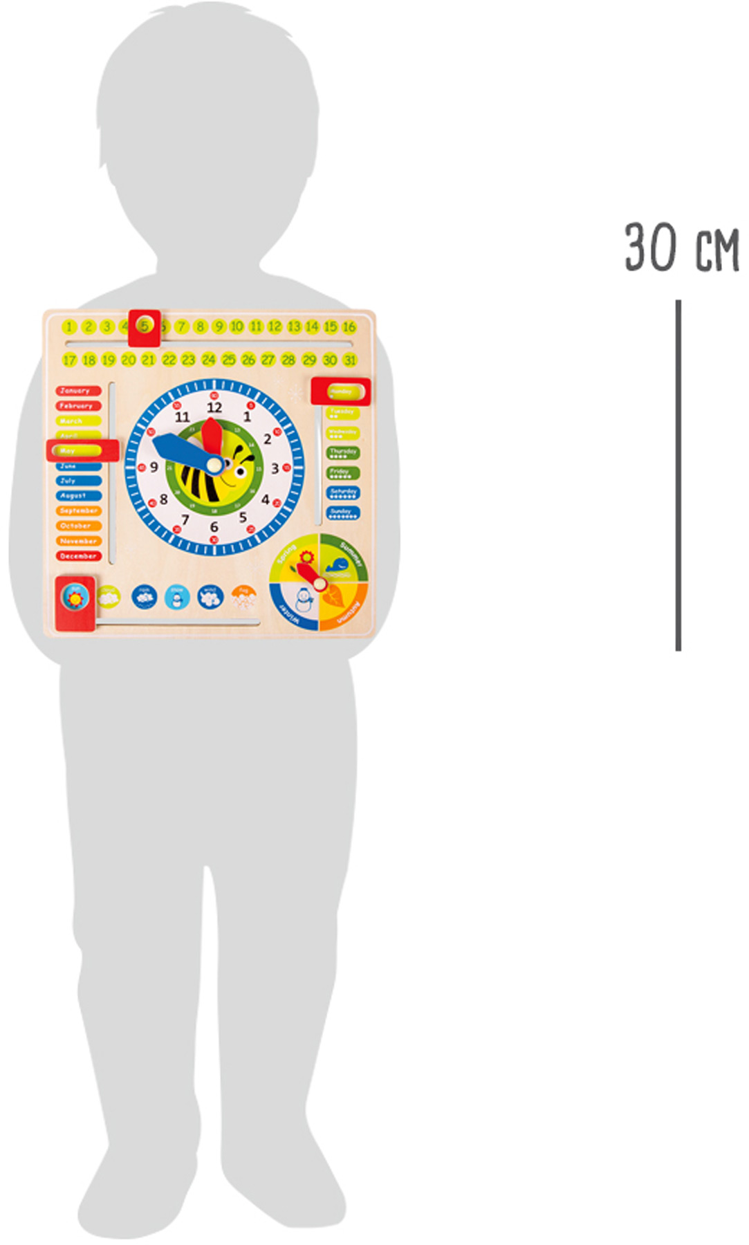 Spielerisch die Eigenschaften des Wetters erkunden und dabei ganz nebenbei die Jahreszeiten unterscheiden, das Datum und die Uhrzeit erlernen. Und welcher Wochentag ist heute eigentlich? Mit dieser wunderbaren Lerntafel ist das spielerisch möglich. Da alle Begriffe auf Englisch dargestellt werden, wird ganz spielerisch eine neue Sprache erlernt.