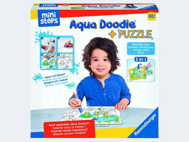 Erstes Malen und Puzzeln in einem! Zu jedem der 2 Puzzles gibt es ein passendes Ausmalbild auf der Rückseite - beides fördert auf unterschiedliche Weise Feinmotorik und Koordination. Aqua Doodle steht für fleckenfreies Malen mit Wasser für Kleinkinder ab 30 Monaten. Trocknet das Wasser, verschwinden die Striche und das Ausmalen beginnt von Neuem. Aqua Doodle von Ravensburger garantiert höchste Qualität in Funktion und Verarbeitung und steht für einen sicheren und langlebigen Malspaß.