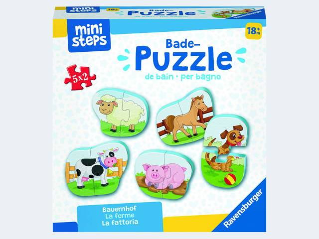 Der lustige Badespaß zum Puzzeln und Anheften! Die dicken, weichen Puzzleteile aus Moosgummi sind nicht nur wasserfest und schwimmen - einmal nass haften sie auch ganz leicht auf allen glatten Oberflächen. Richtig kombiniert lassen sich 5 fröhliche Lieblingstiere rund um den Bauernhof entdecken. Gleichzeitig fördert das Puzzeln die Feinmotorik sowie die Konzentration und animiert zum Experimentieren mit Wasser.