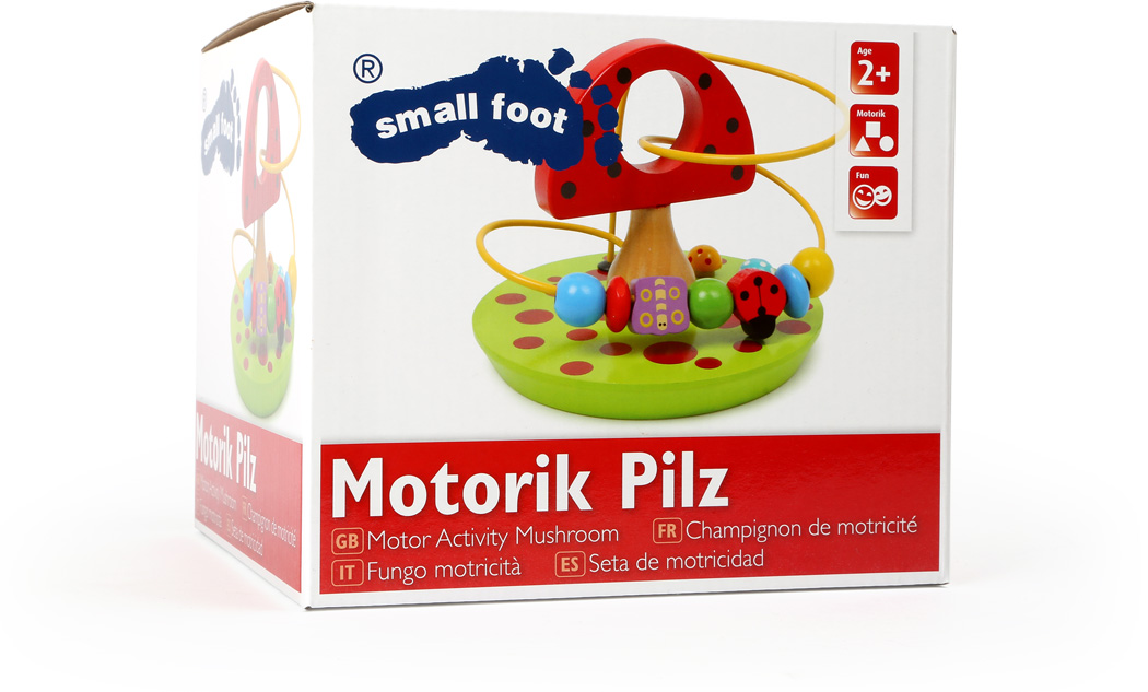 Dieser farbenfroh lackierte Motorik-Pilz aus hochwertigem Holz lädt zu Fingerspielen ein. Besonders knifflig: Die bunt lackierte Metallschleife führt mitten durch den Pilzkopf. Daran werden die Schiebeelemente in Form von Kugeln, Ringen und Schmetterling und Marienkäfer bewegt - gar nicht so einfach! Der Pilz ist eine tolle Übung für die Motorik und bringt gute Laune ins Kinderzimmer!