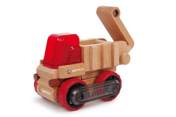 Auf der Baustelle ist immer was los! Der Muldenkipper fährt sicher Sand, Steine und Kies - und verwandelt sich genauso schnell in einen Raupenkipper oder eine Zugmaschine. Das tolle Bausystem der Transformobiles macht's möglich.
