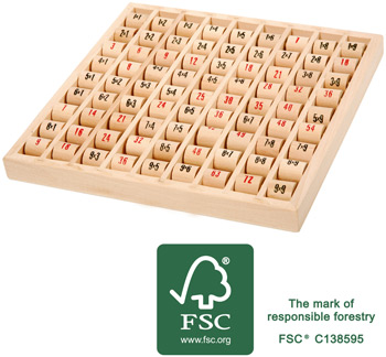 Das kleine 1x1 schnell gelernt! Mit diesem Spiel aus FSC® 100%-zertifiziertem Holz können mit Walzen im Rahmen die Aufgaben gestellt und beim Drehen die Lösungen kontrolliert werden.