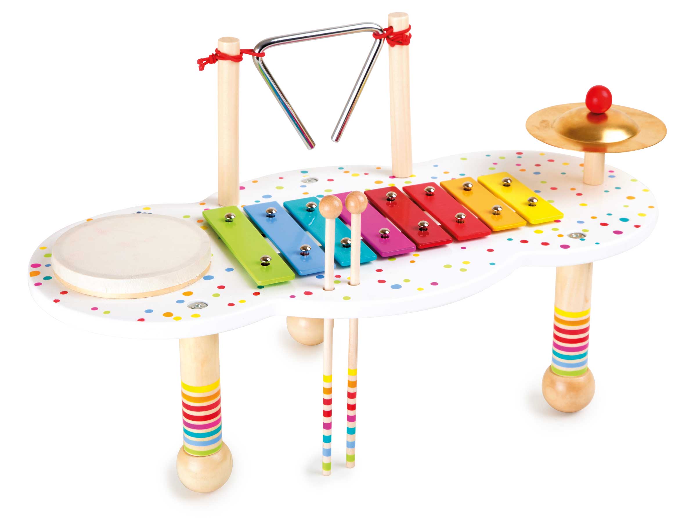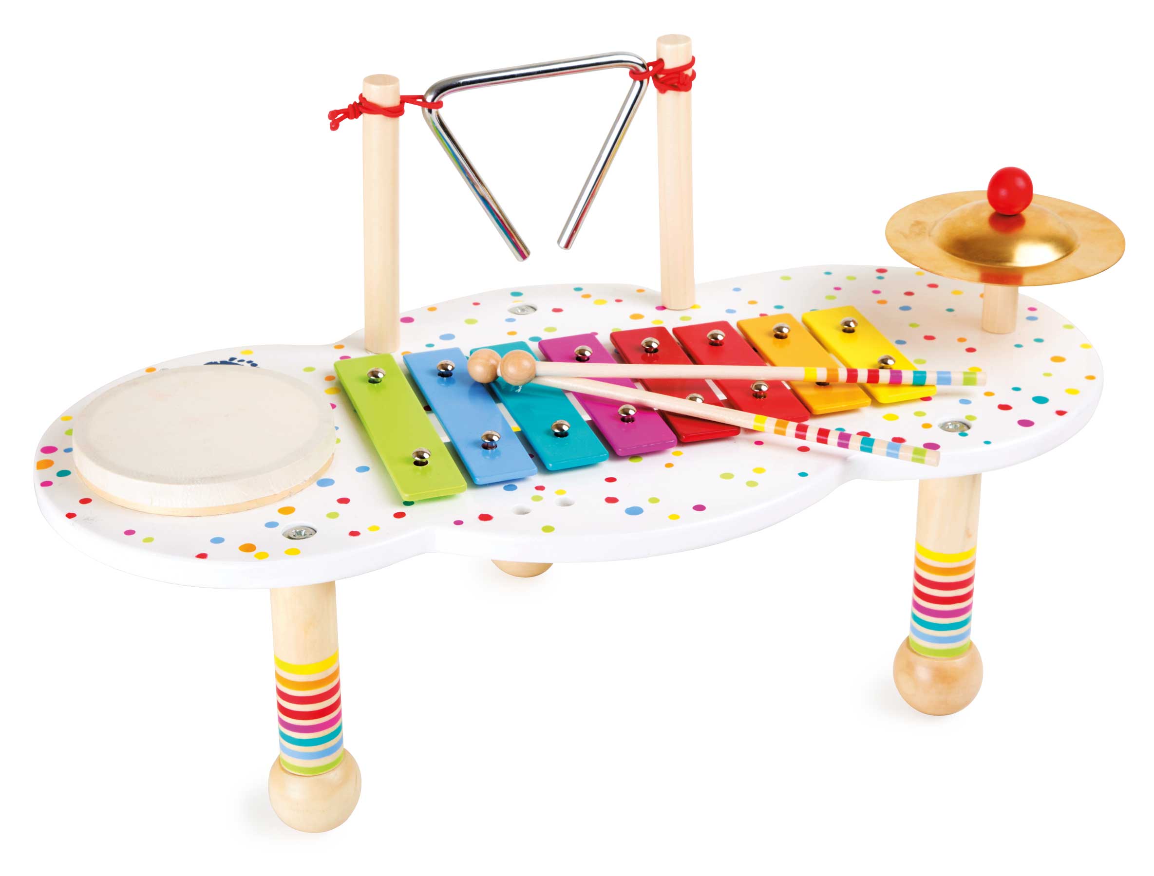 Mit diesem liebevoll gestalteten Musiktisch wird jedes Kind zum Musizieren animiert. Hier kann die Tonleiter rauf und runter gespielt und ganz nebenbei das Rhythmusgefühl geschult werden.