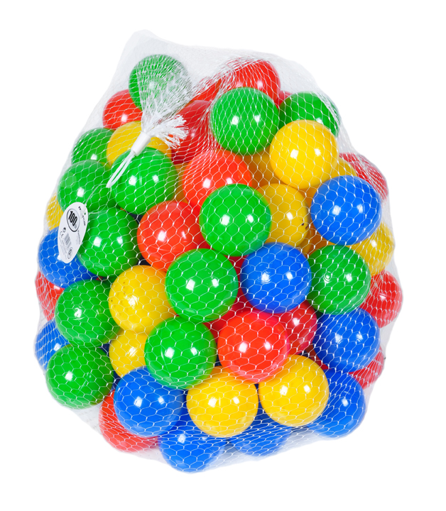 100 Bälle in knalligem Blau, Rot, Gelb und Grün ohne gefährliche Weichmacher - ca. Ø 6 cm - TÜV zertifiziert.