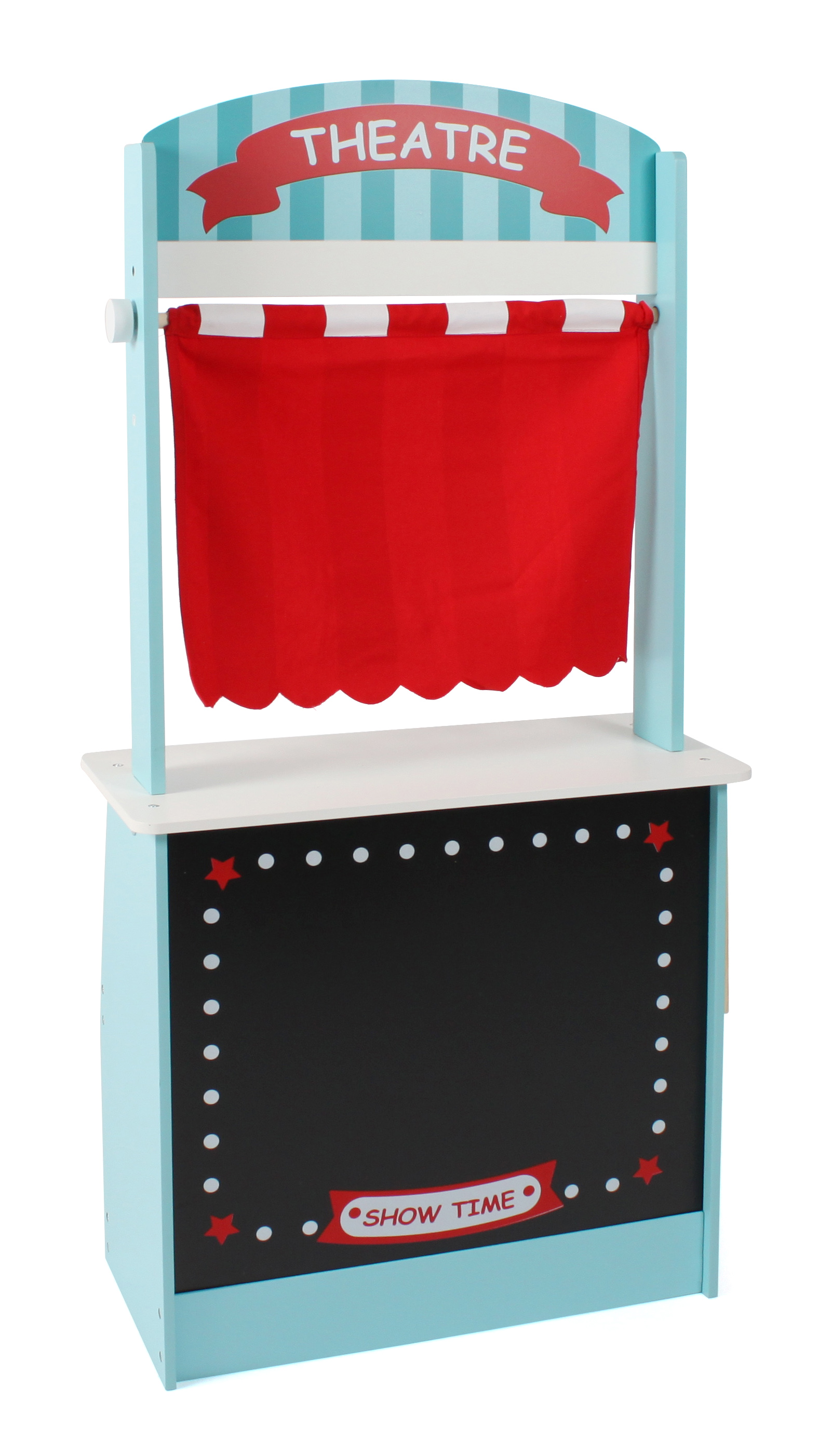 Durch die ausgefallene 2 in 1 Kombi, Kaufladen und Theater, wird den Spielkindern Abwechslung geboten. Vormittags noch im Verkaufsstand und abends Direktor im eigenen Theater. Der Kaufladen bietet zwei große Ablagen mit Preisschildern und einer kleinen Tafel. Um Theaterstücke anzuschreiben befindet sich auf der Theaterseite zusätzlich eine große Tafel. Der zweifarbige Vorhang wird in beide Varianten super integriert als Bühnenvorhang oder Sonnenschutz. Artikelmaße 54 x 25 x 112 cm, Gewicht: 6,3 kg