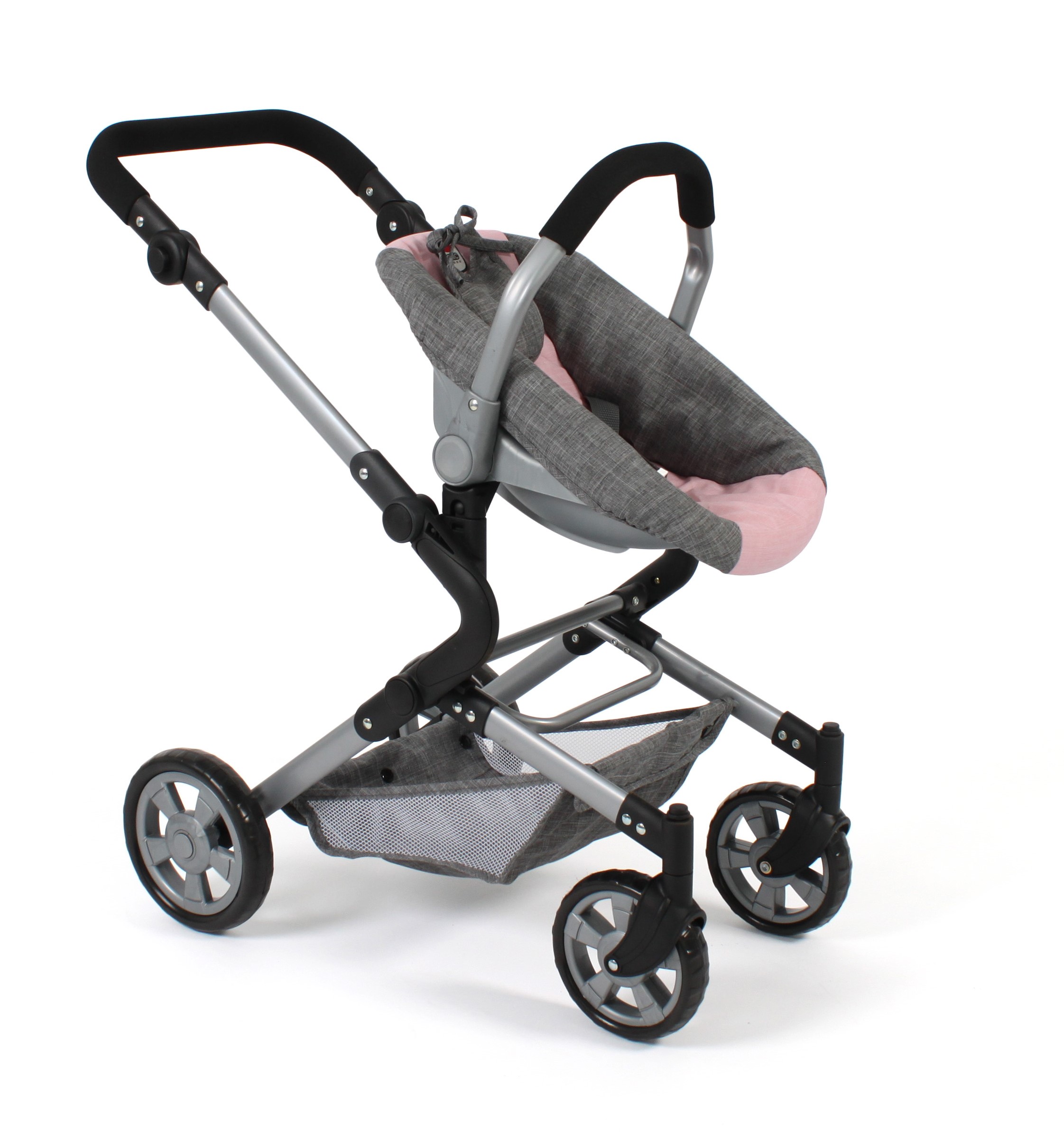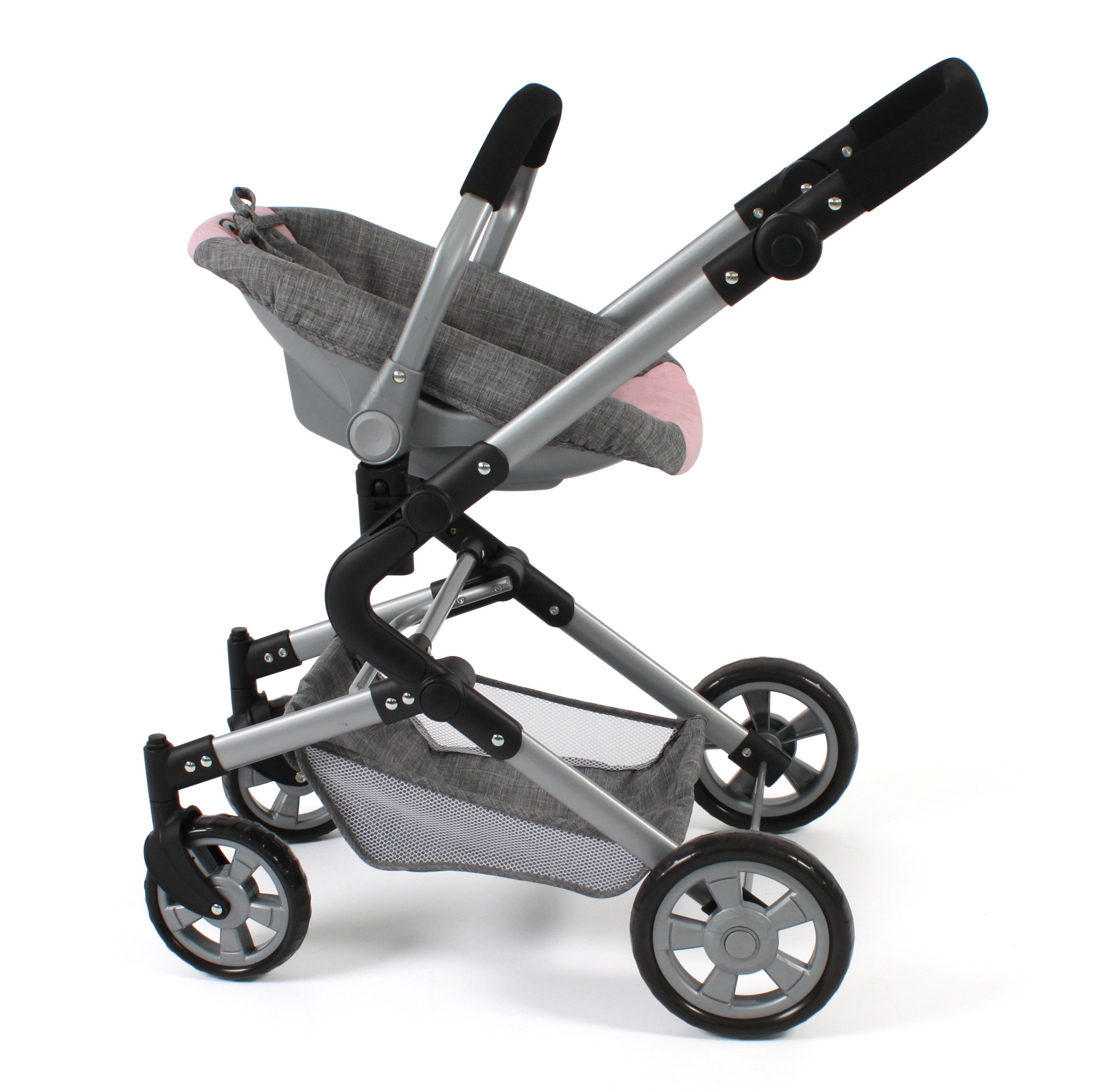 3-in-1 Kombi-Puppenwagen Lia Melange grau-rosa