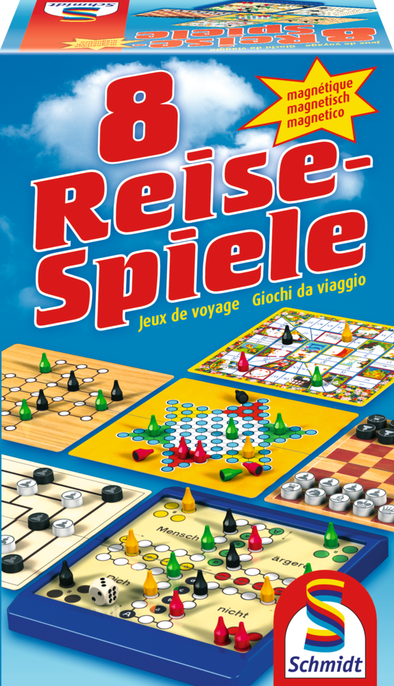 Ganz schön anziehend: Für unterwegs gibt's die magnetische Spielesammlung mit auswechselbaren Spielplänen. Das bringt gleich achtfachen Spaß, egal ob Mühle, Dame, Schach, Halma, Gänsespiel, Solitaire, Fünf in einer Reihe oder das beliebte MENSCH ÄRGERE DICH NICHT. Das klappbare Spielbrett bietet Platz für's Spielmaterial und hält alles gut zusammen.